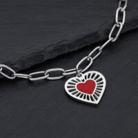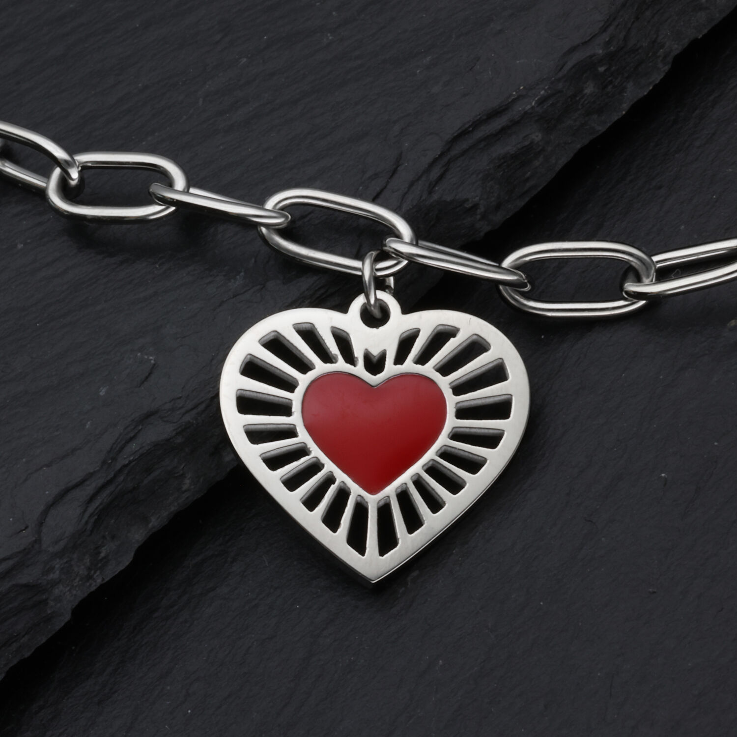 Sacred Heart Bracelet -rannekoru on enemmän kuin pelkkä koru – se on kunnianosoitus intohimolle, muutokselle ja sisäiselle voimalle. Ikoninen punaisen sydämen design edustaa kestävää rakkautta ja tunne-elämän syvyyttä, tehden tästä sydänrannekorusta merkityksellisen ja vaikuttavan asusteen.