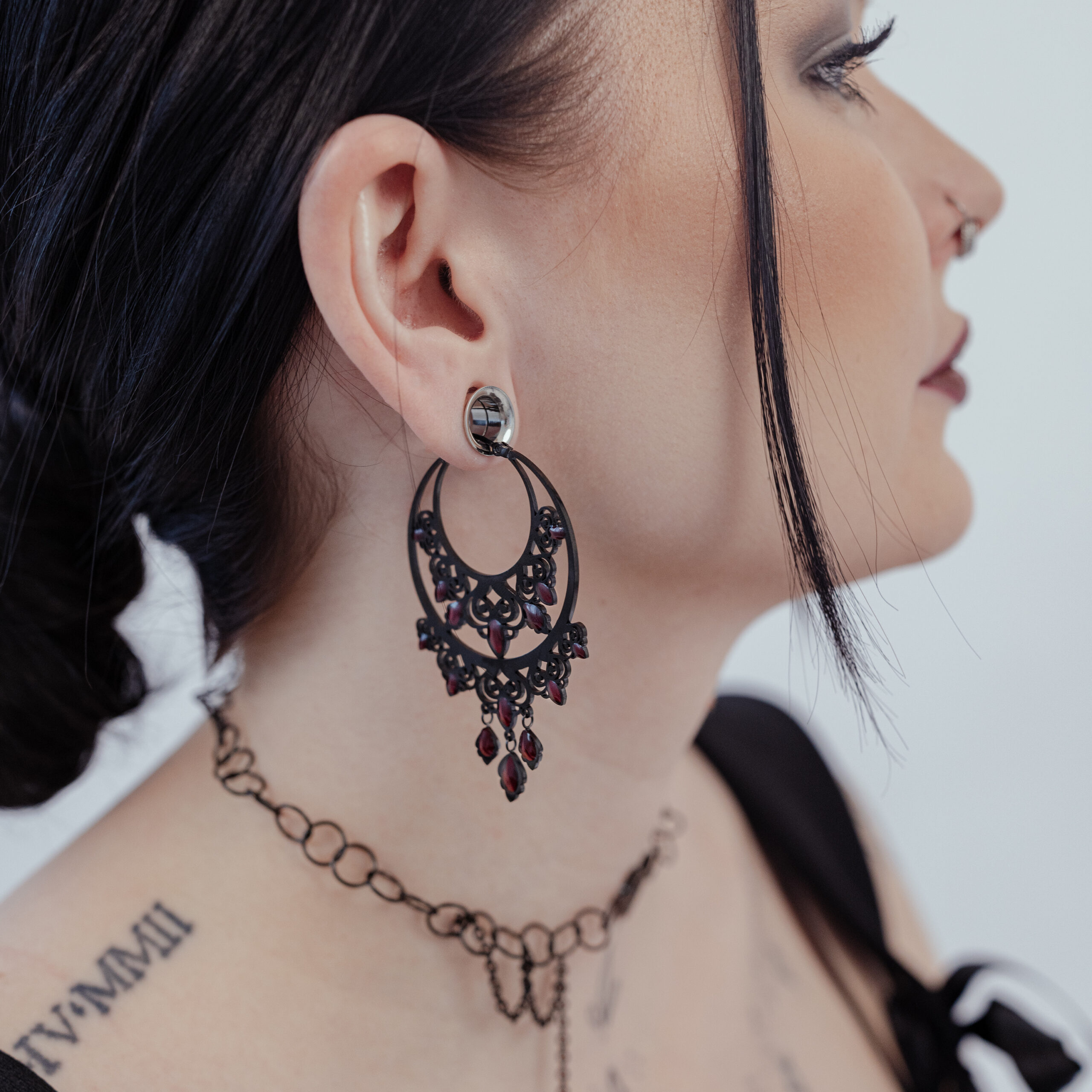 Nämä elegantit korvakorut on valmistettu korkealaatuisesta ruostumattomasta teräksestä ja myydään pareittain. Ruostumaton teräs on korroosionkestävää ja huippuluokan PVD-pinnoitteemme estää korvakorujesi värin kulumisen ja haalistumisen! Voit käyttää näitä korvakoruja sekä tavallisten korvareikien että tunnelien läpi. Tappi on 1,0 mm paksu, korvarenkaiden leveys on n. 41,0 mm ja kokonaispituus 65,0 mm.