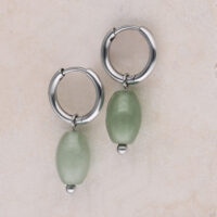 The Little Green Aventurine Drop Hoops combine timeless design with a fresh, modern boho aesthetic. The polished green aventurine gemstone, shaped into a soft teardrop, adds a natural pop of color and a light, vibrant feel. Each pair is unique thanks to the individual pattern of the natural stone.