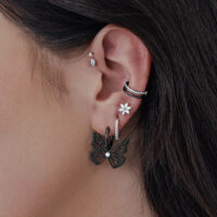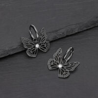 Pienet saranalliset perhoskorvakorut, joiden leikkisä muotoilu tuo tyyliisi ilmavuutta ja keveyttä. Perhosriipus heiluu liikkeidesi mukana ja sen keskellä oleva kristalli välkehtii valon osuessa siihen, luoden kesäisen tunnelman.