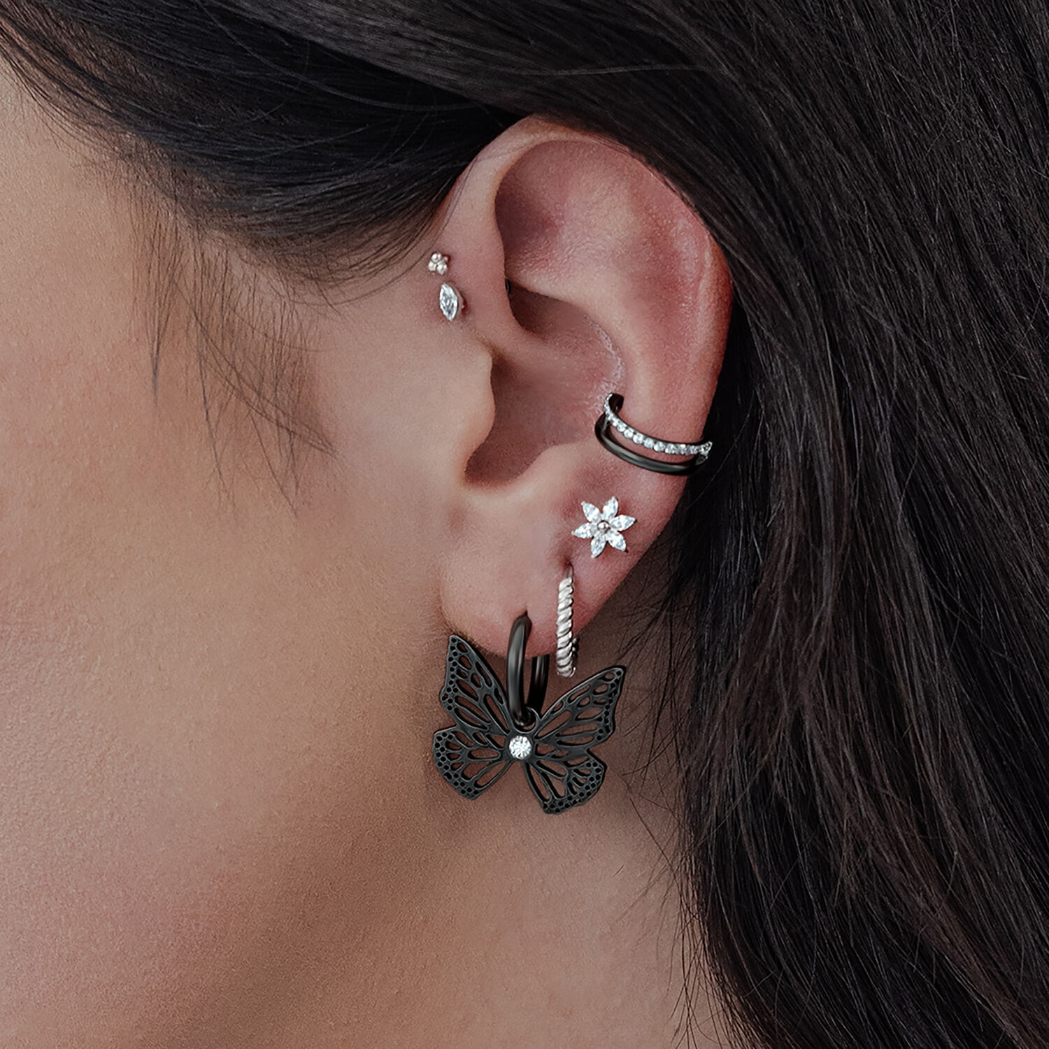 Teräksiset Little Butterfly -korvarenkaat (2 kpl)