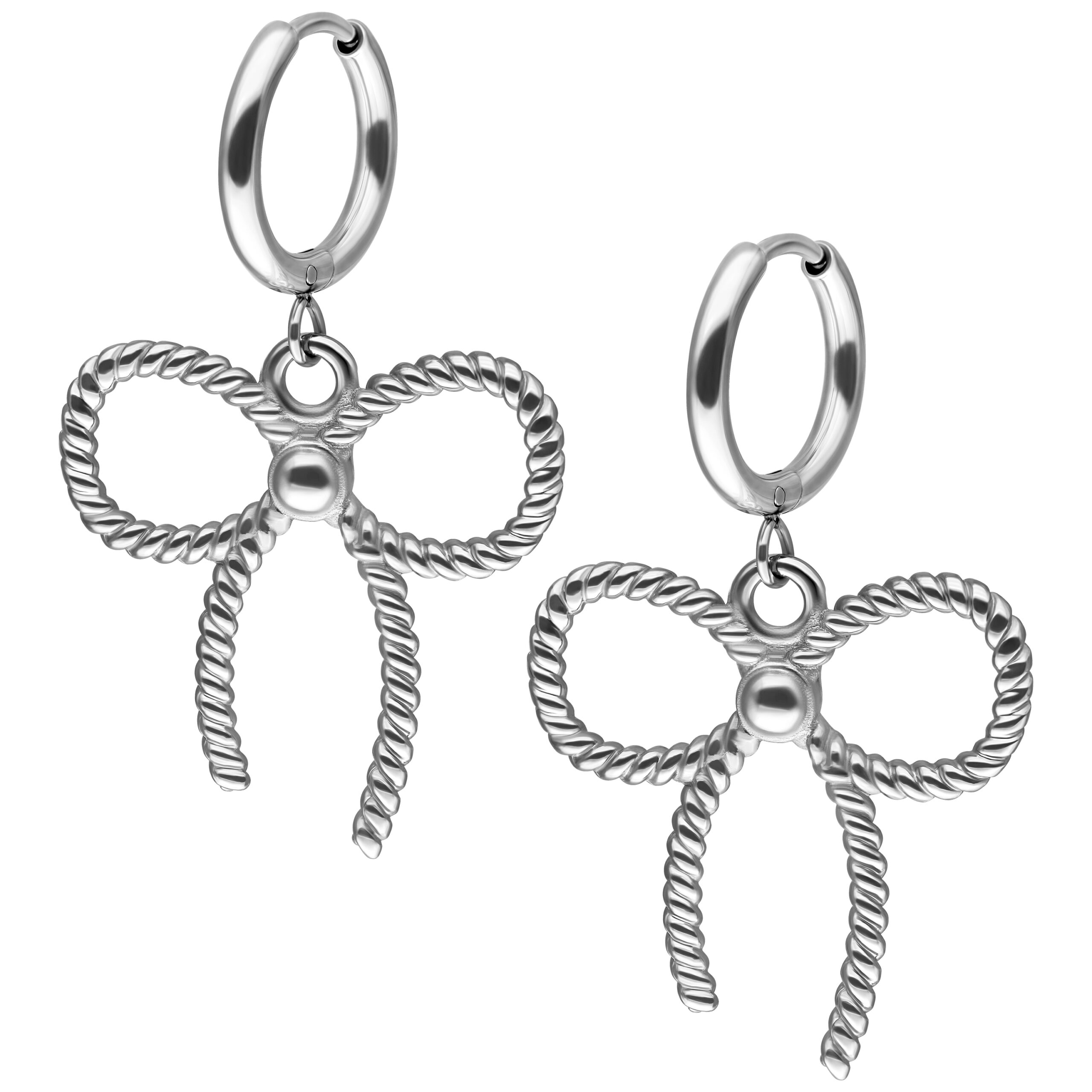 Ranneketjun kanssa täydellisesti yhteensopivat, kierretyt rusettikorvarenkaat lisäävät kokonaisuuteen viehättävän silauksen- Taiteellisesti kierretty rusetti on sekä moderni että leikkisä – todellinen katseenvangitsija, joka lisää suloisen silauksen mihin tahansa asuun. Myös korvarenkaat on valmistettu kestävästä 316L kirurginteräksestä, joka tunnetaan hypoallergeenisista ominaisuuksistaan, tummumista ehkäiseväst pinnastaan ja kestävästä laadustaan.