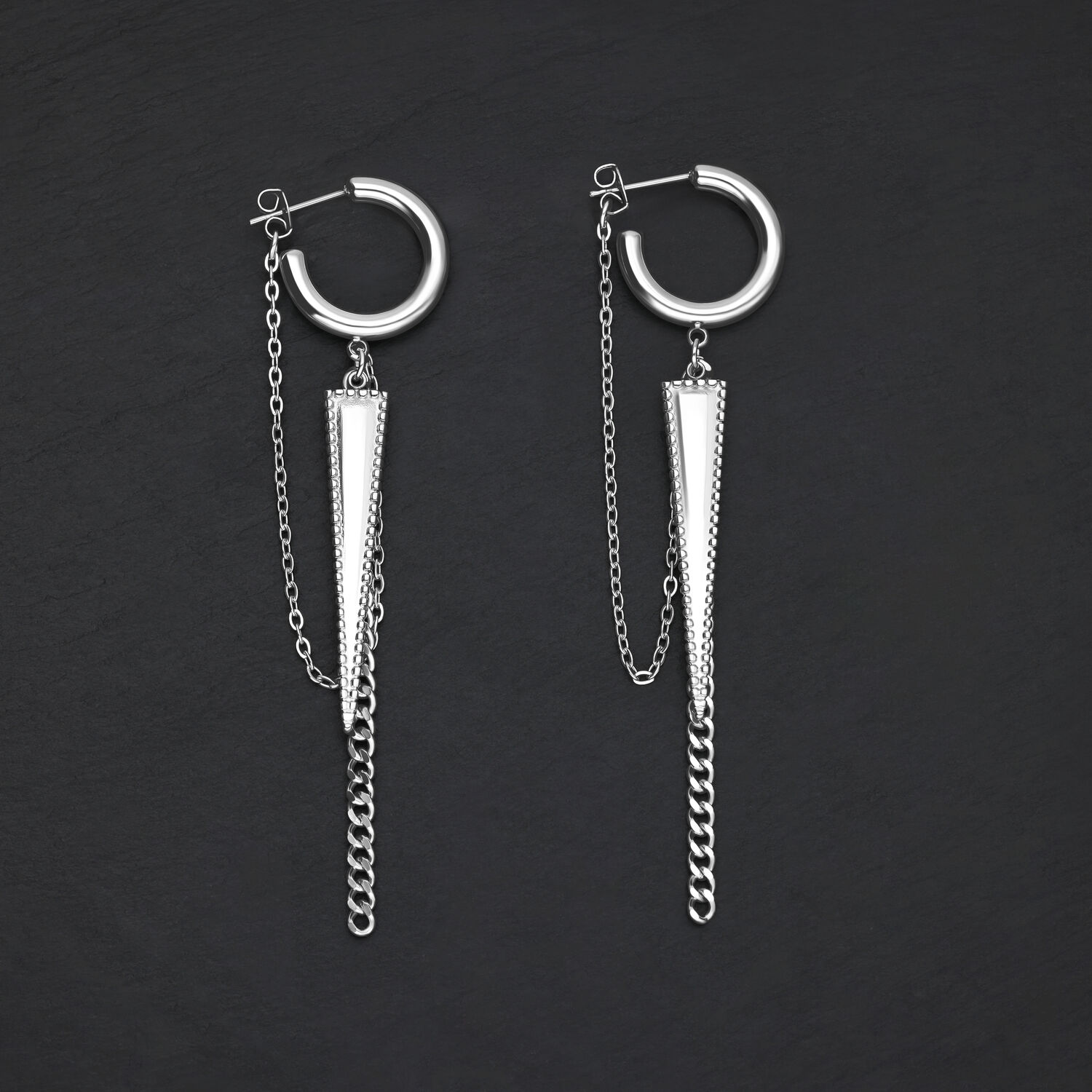 Little rockin’ Triangle -korvakorumme ovat täydellinen katseenvangitsija jokaiselle, joka uskaltaa erottua tyylillään. Ne tarjoavat ainutlaatuisen yhdistelmän teollista muotoilua ja eleganssia. Sopivat niin festareille kuin arkikäyttöön: korvakorut sopivat täydellisesti nahkatakkien, streetwear-tyylin, bleiserien tai yksinkertaisen mustan asun kanssa ja tekevät jokaisesta tyylistä astetta räväkämmän!