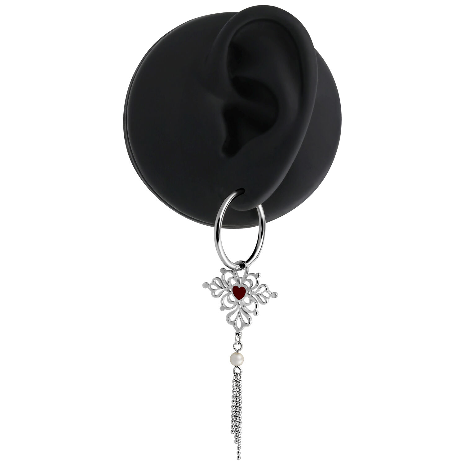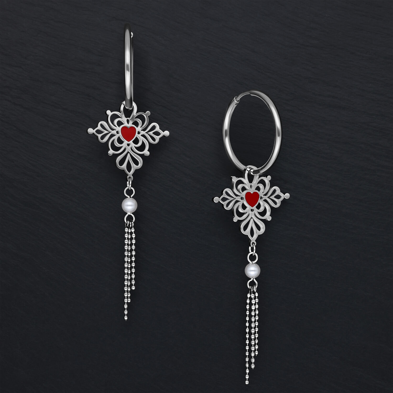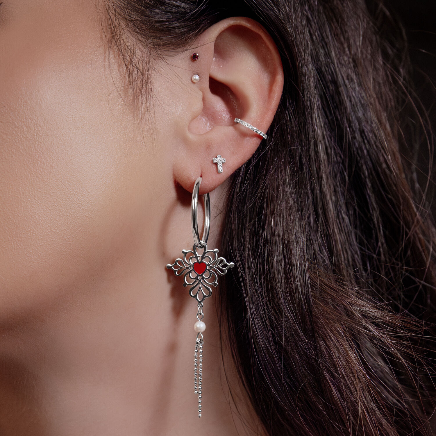 Little Sacred Heart Enamel Hoops -korvakorut ovat täydellinen asuste niille, jotka rakastavat eleganttia muotoilua ja henkistä vivahdetta. Hieno emalipinnoite koristaa korvakoruja pienellä, rakkaudella valmistetulla sydänsymbolilla, joka antaa niille erityisen merkityksen ja hienovaraisen mystisen sävyn.