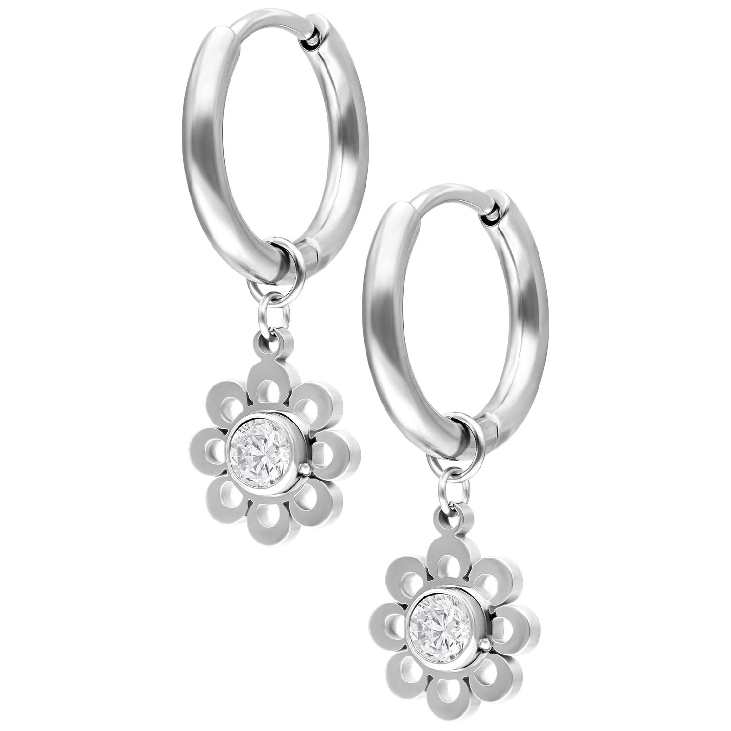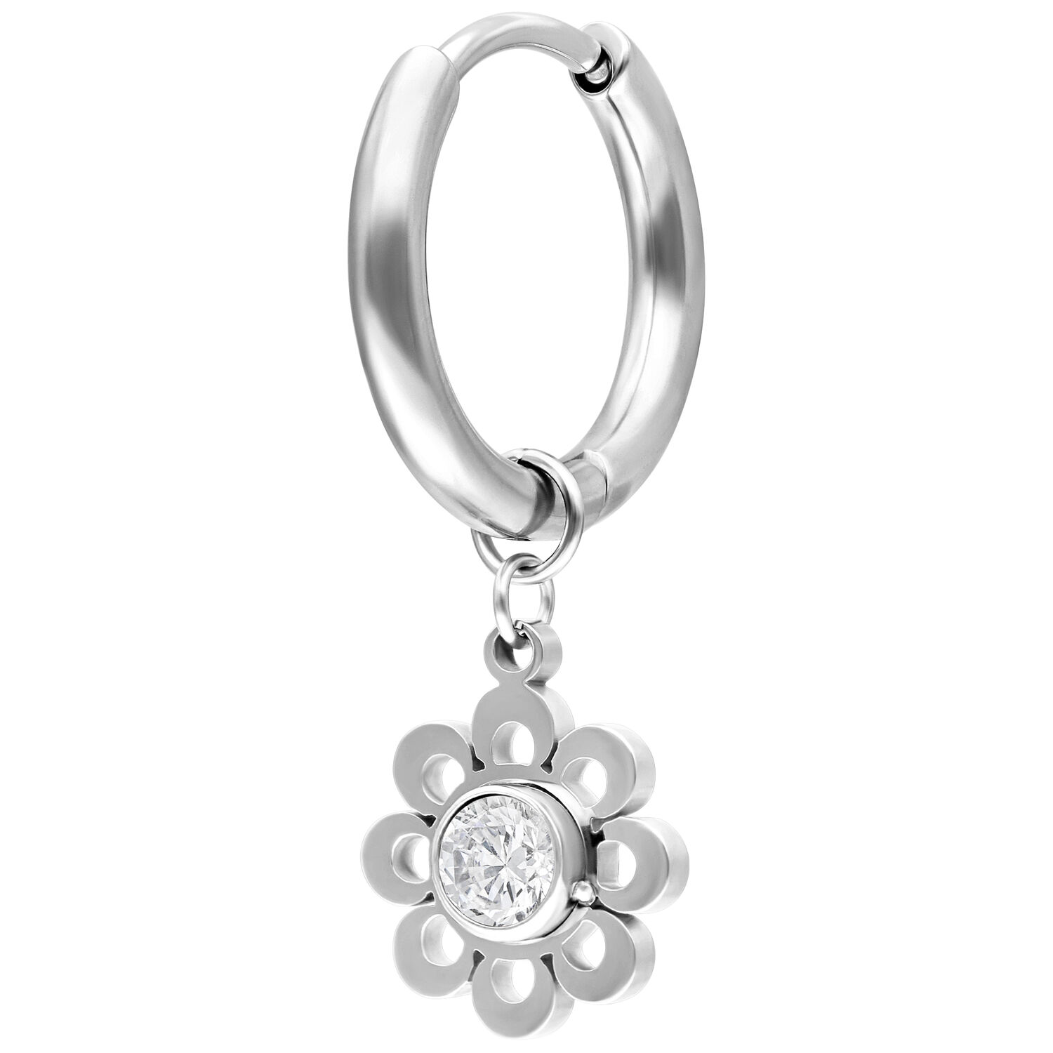 Kukkivan kaunis koru! Mini Crystal Flower -korvakorut ovat pienet rengaskorvakorut, joissa on herkät kristallikoristeisen kukkariipukset. Naisellinen muotoilu yhdistää leikkisän eleganssin moderniin tyyliin – täydellinen kaikille, jotka rakastavat kukkaisia yksityiskohtia ja kimaltelevia kohokohtia.