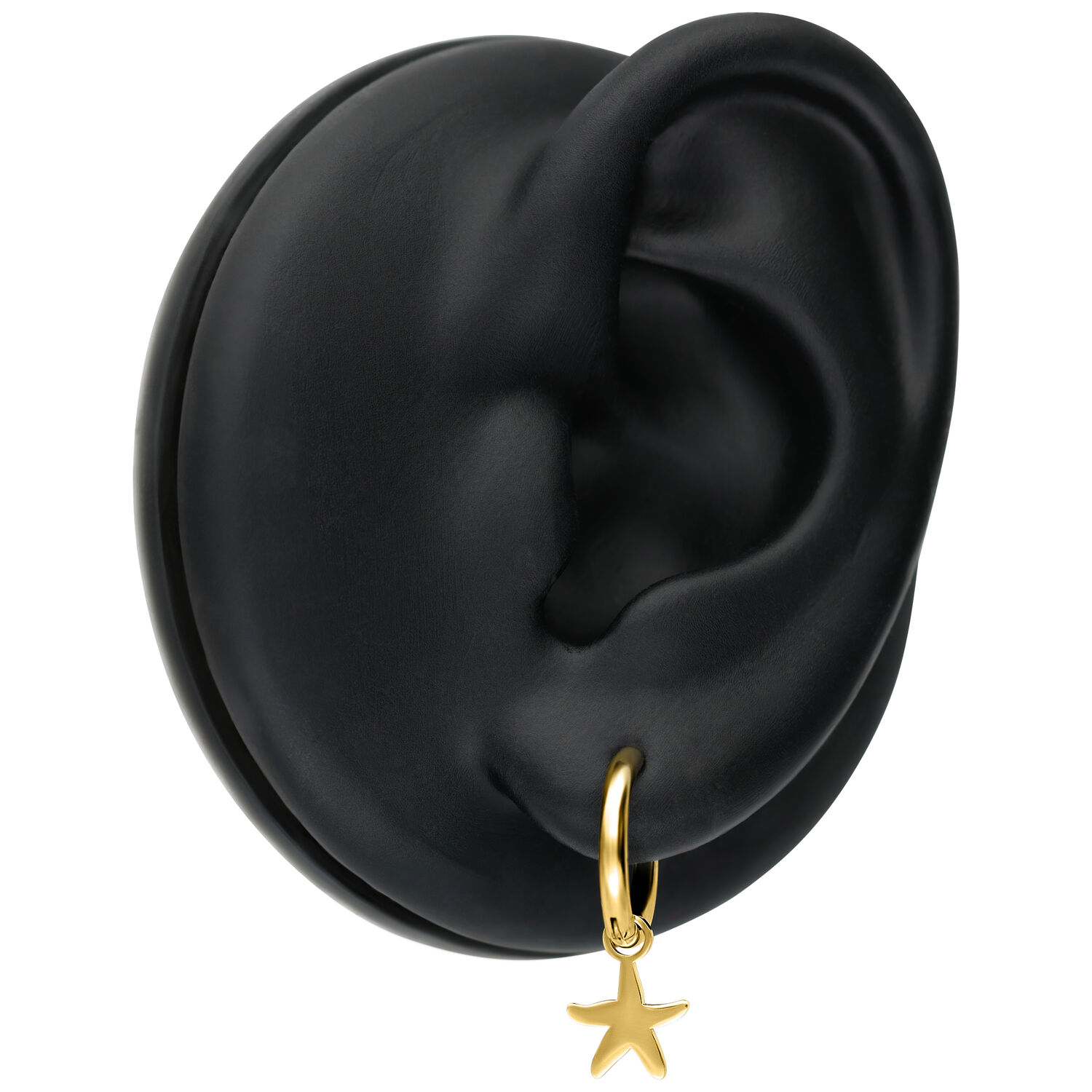 Tuo meri korviisi! Mini Starfish Hoops -korvakorut koostuvat hennon siroista, saranoiduista renkaista, joita koristavat herkät meritähti-riipukset – täydellinen asuste kaikille meren ystäville. Yksityiskohtainen muotoilu tuo tyyliisi raikkaan ja leikkisän vivahteen sekä herättää muistoja auringosta, hiekasta ja suolaisesta ilmasta.