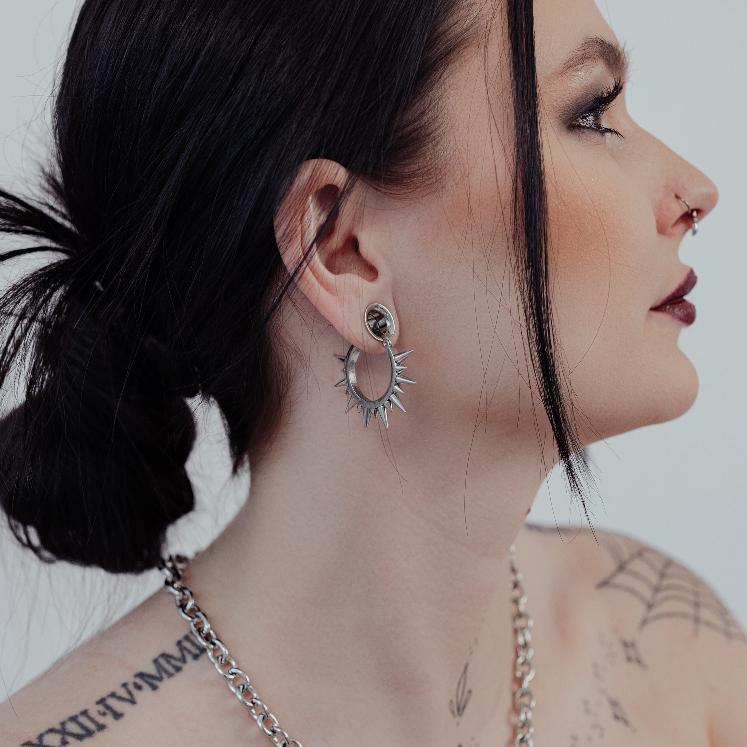These special earrings are made of high quality stainless steel and are sold in pairs. Stainless steel is corrosion resistant and our high-end PVD coating keeps the colour of your earrings abrasion resistant and colourfast! They are wearable through your normal ear holes as well as through your tunnels. The pin is 1.0 mm thick and the hoops have a diameter of approx. 18.0 mm. The improved hoop makes insertion even easier!