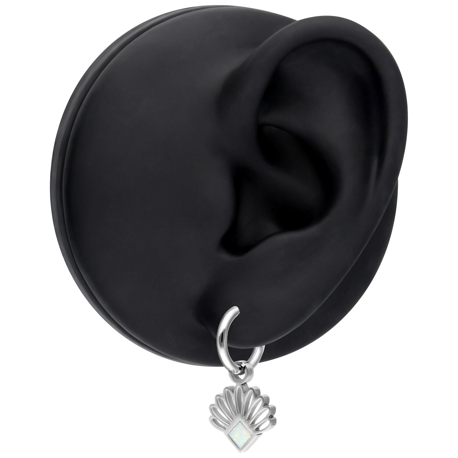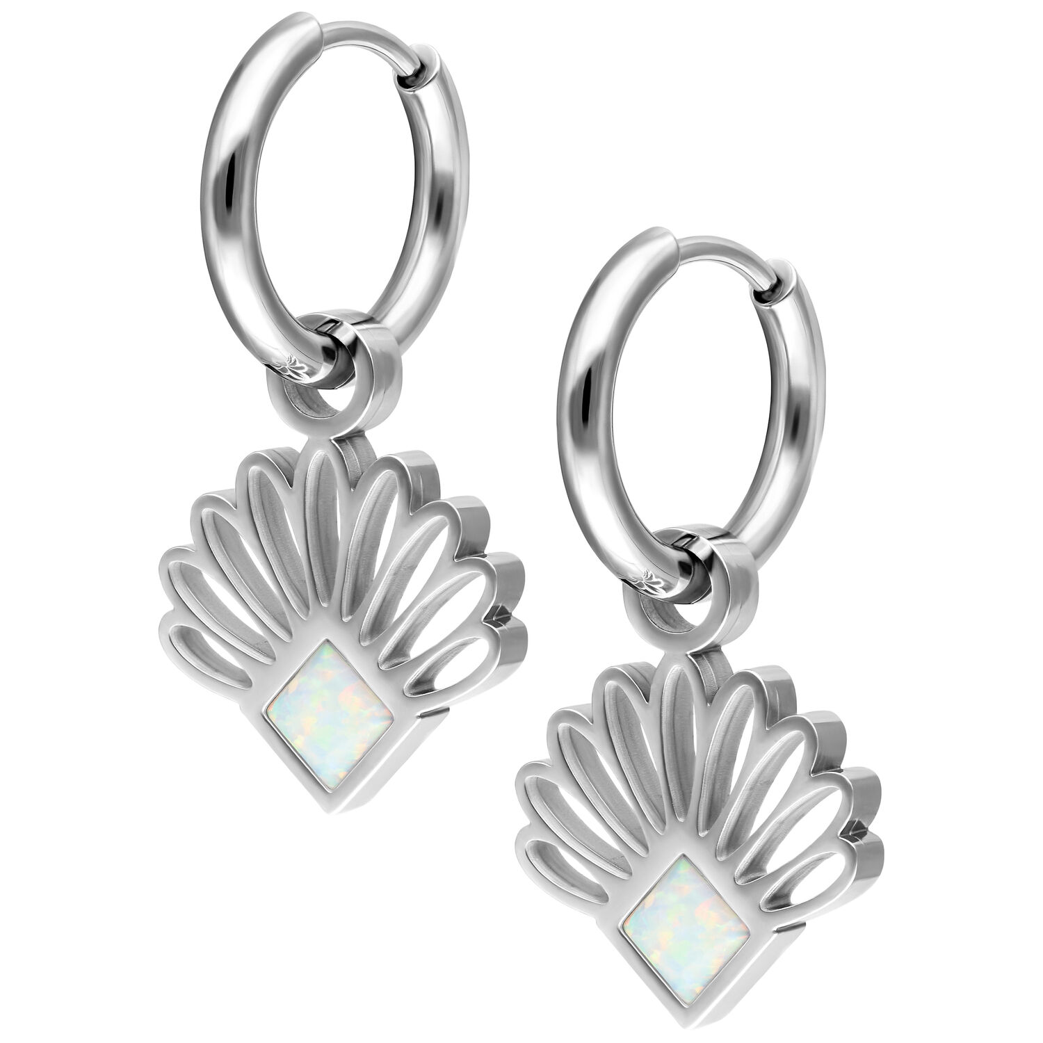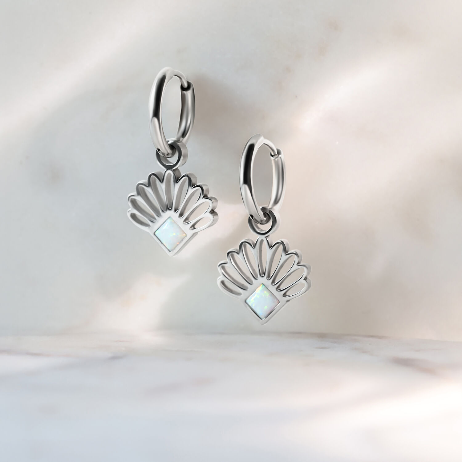 The Synthetic Opal Fan Hoops feature a beautifully fanned design adorned with shimmering synthetic opals. Their vibrant color reflections give the hoops a refined and lively appearance, making them a stylish eye-catcher.