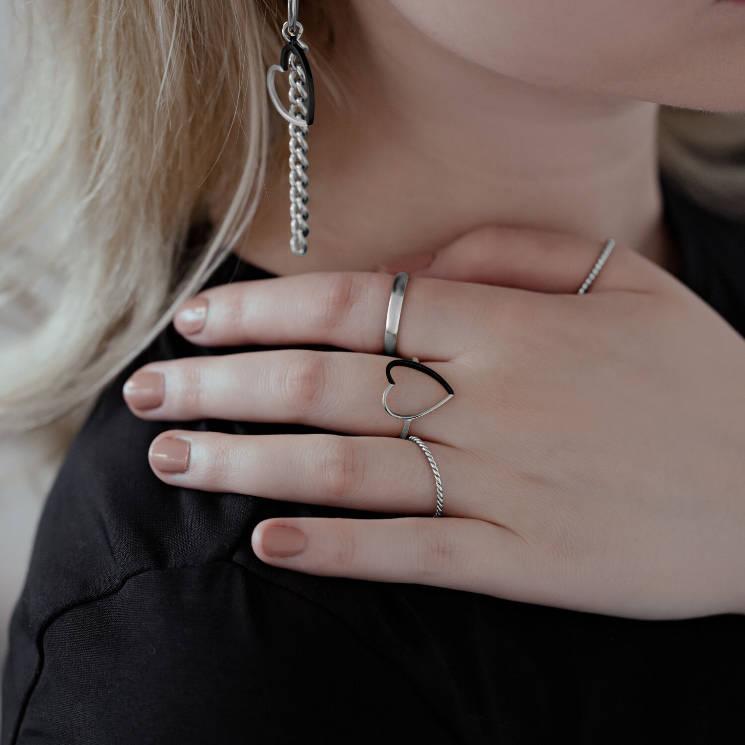 Rakastatko ekstravagantteja kuvioita ja korkealaatuisia koruja? Siinä tapauksessa 2 Coloured Heart -sormus on juuri sinulle sopiva! Sormus on todellinen katseenvangitsija ja se sopii käytettäväksi monien muiden sormusten kanssa! Sulavat linjat antavat tälle sormukselle ainutlaatuisen ja elegantin ilmeen. Yhdistä se esimerkiksi 2 Coloured Heart Hoops -korvarenkaiden kanssa.
