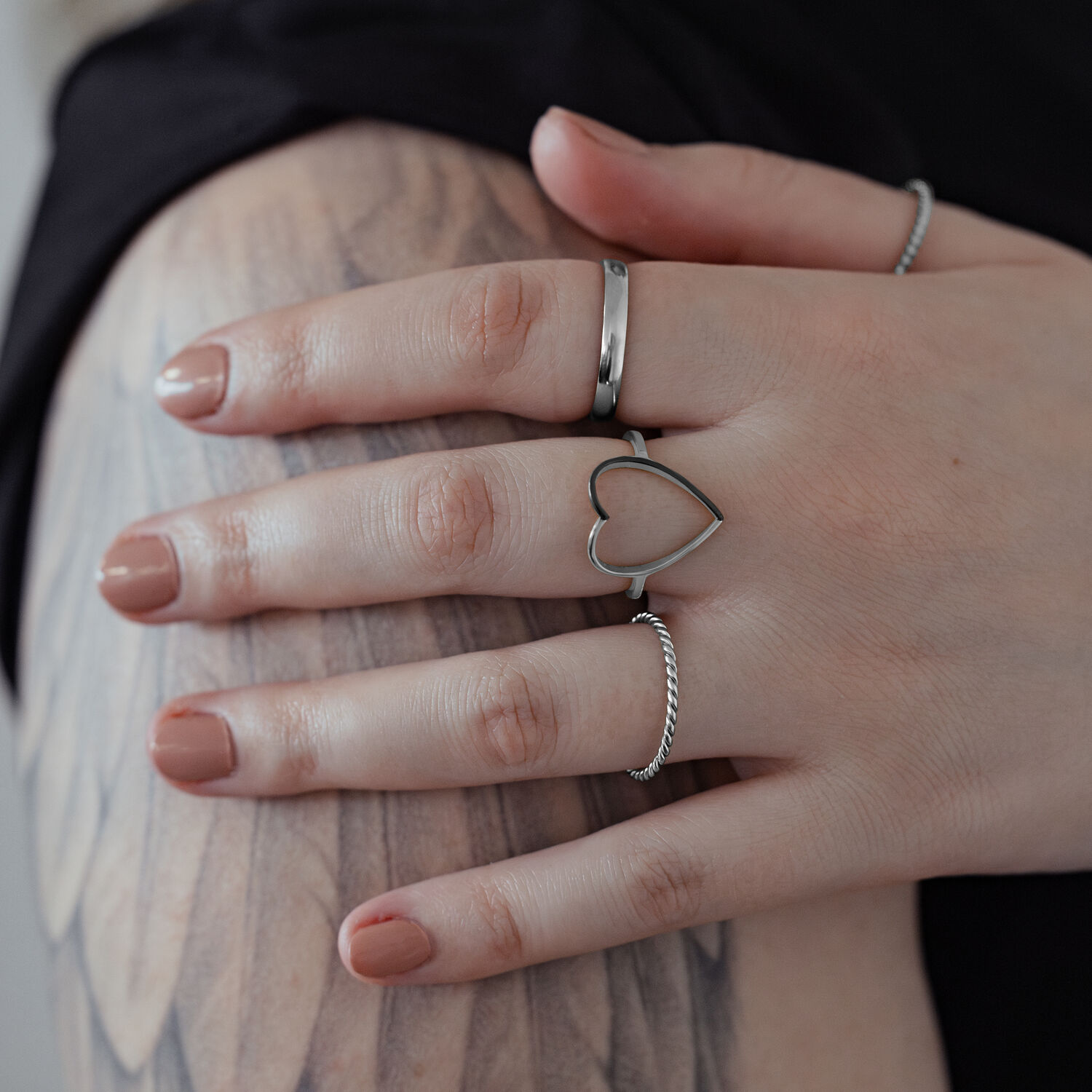 Tämä kaunis sormus on valmistettu korkealaatuisesta 316L ruostumattomasta teräksestä. Se on saatavana kokoina 17,0 mm, 18,0 mm, 19,0 mm ja 20,0 mm.