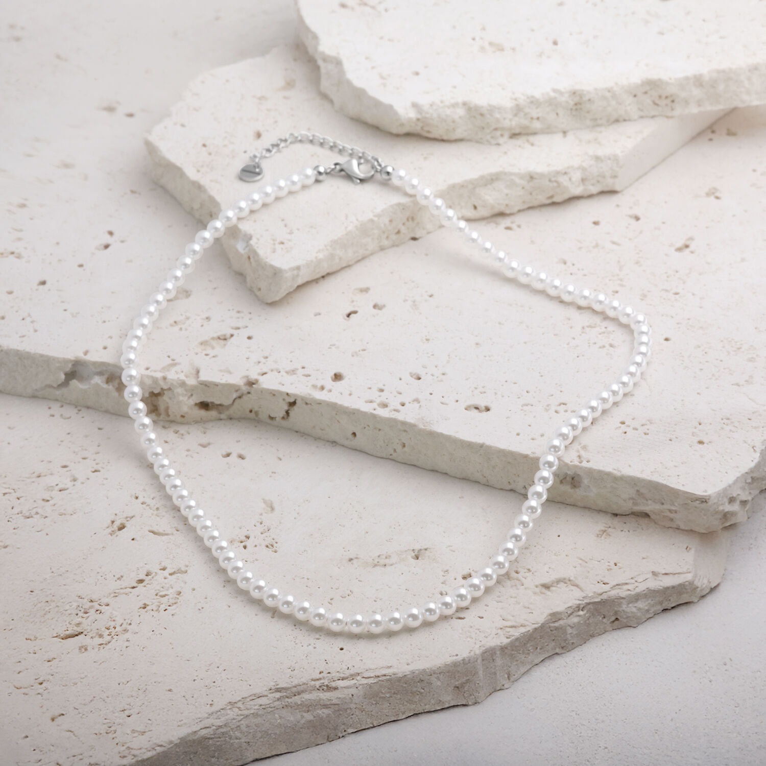 Tyylikäs, synteettisistä helmistä ja korkealaatuisesta 316L kirurgisesta teräksestä tehty kaulakoru yhdistää klassisen muotoilun ja pitkäikäisen laadun.