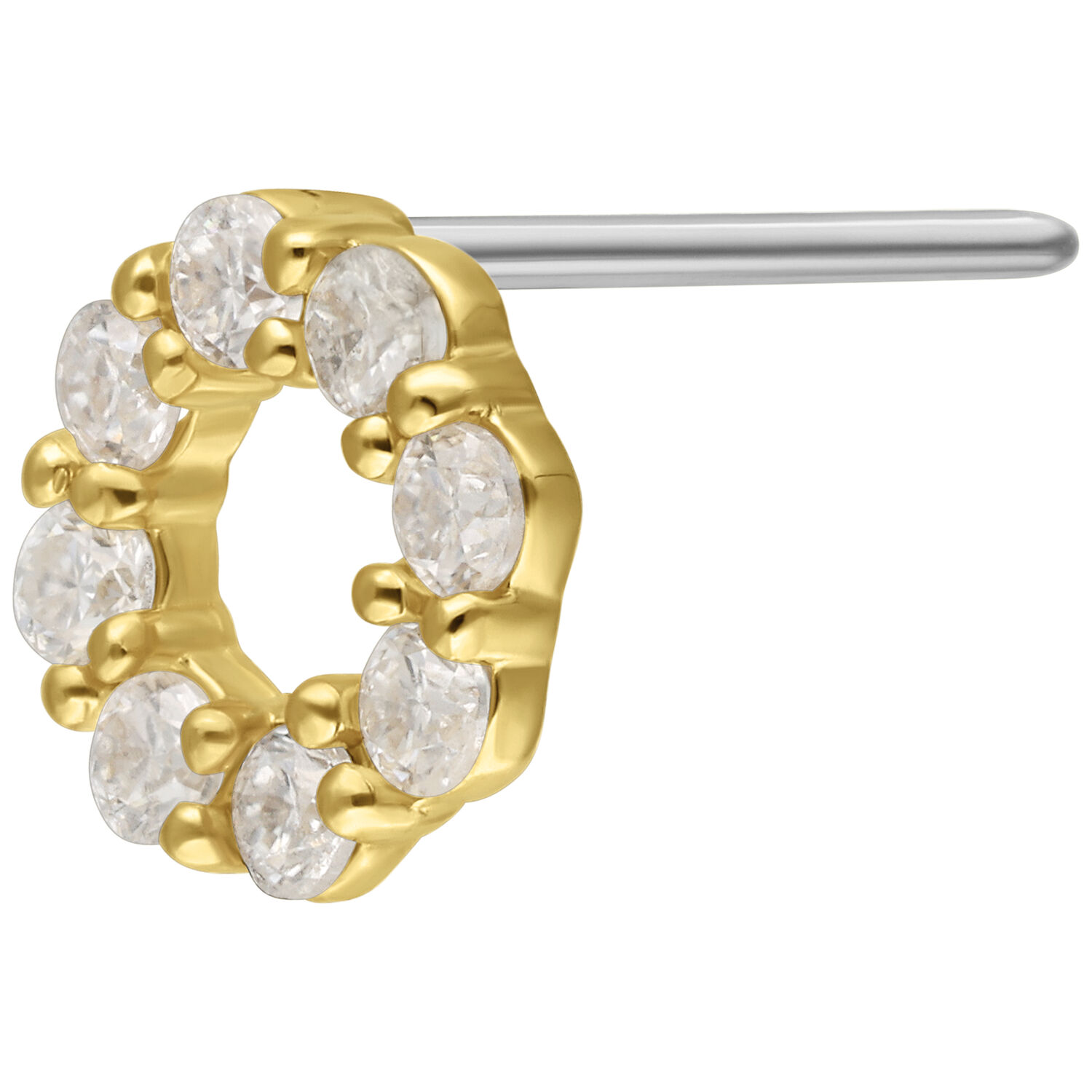 The 14K Gold Push-Fit Moissanite Wreath Attachment captures the essence of balance and brilliance. Multiple moissanite gemstones form a radiant circle, symbolizing unity and perfection.