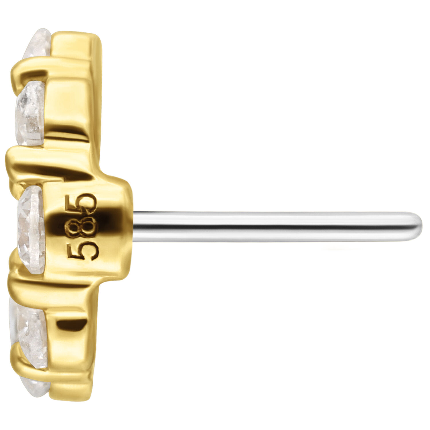 Crafted from solid 14 karat gold, this premium attachment stands out with its precise craftsmanship and exceptional sparkle. The push-fit mechanism ensures easy handling and a secure fit, making it a refined addition to any jewelry setup.