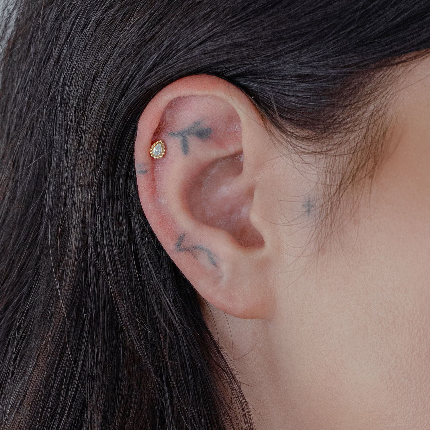Tämän kultaisen koristeosan (14 karaatin (585) keltakulta) keskipisteenä on pisaran muotoinen kristalli. Koristeosa sopii täydellisesti Wildcat® – 14K Perfect Fit Labretille ja se tekee vaikutuksen naisellisella muotoilullaan. Koristeosan koko on 3,7 x 4,9 ja paino vain 0,14 g – kaunis ja kevyt kultainen koristeosa.