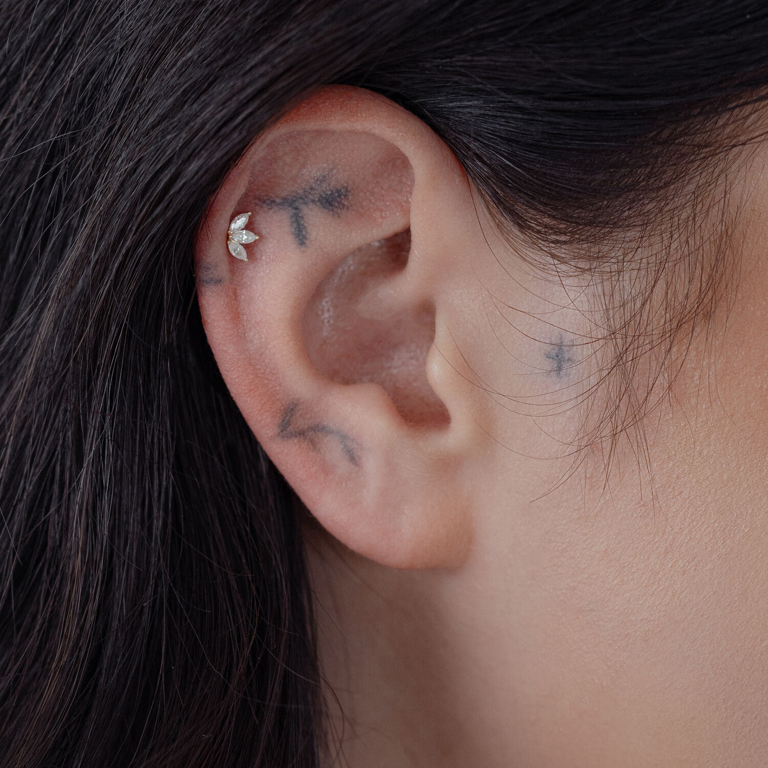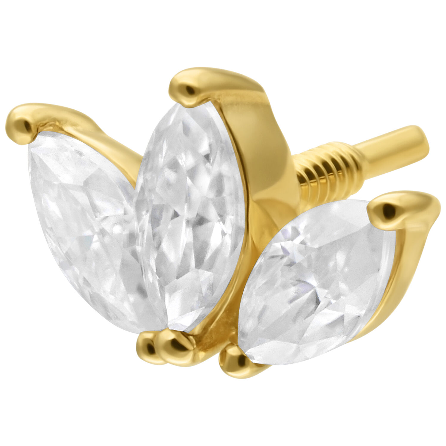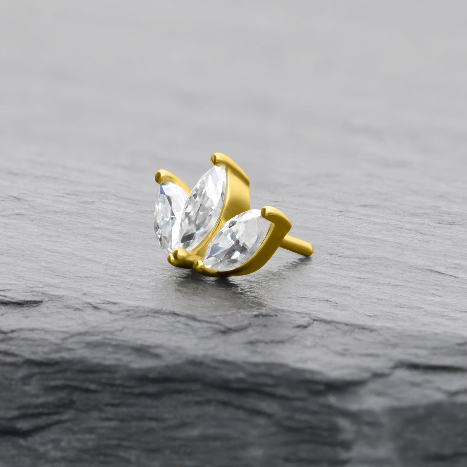 Tämän kultaisen koristeosan (14 karaatin (585) keltakulta) keskipisteenä on lootuskukan muotoinen kristalli. Koristeosa sopii täydellisesti yhteen Wildcat® – 14K Perfect Fit Labretin kanssa ja sen kaunis muotoilu ei jätä ketään kylmäksi. Koristeosan koko on 3,9 x 6,3 ja paino vain 0,12 g – kaunis ja kevyt kultainen koristeosa.