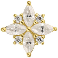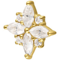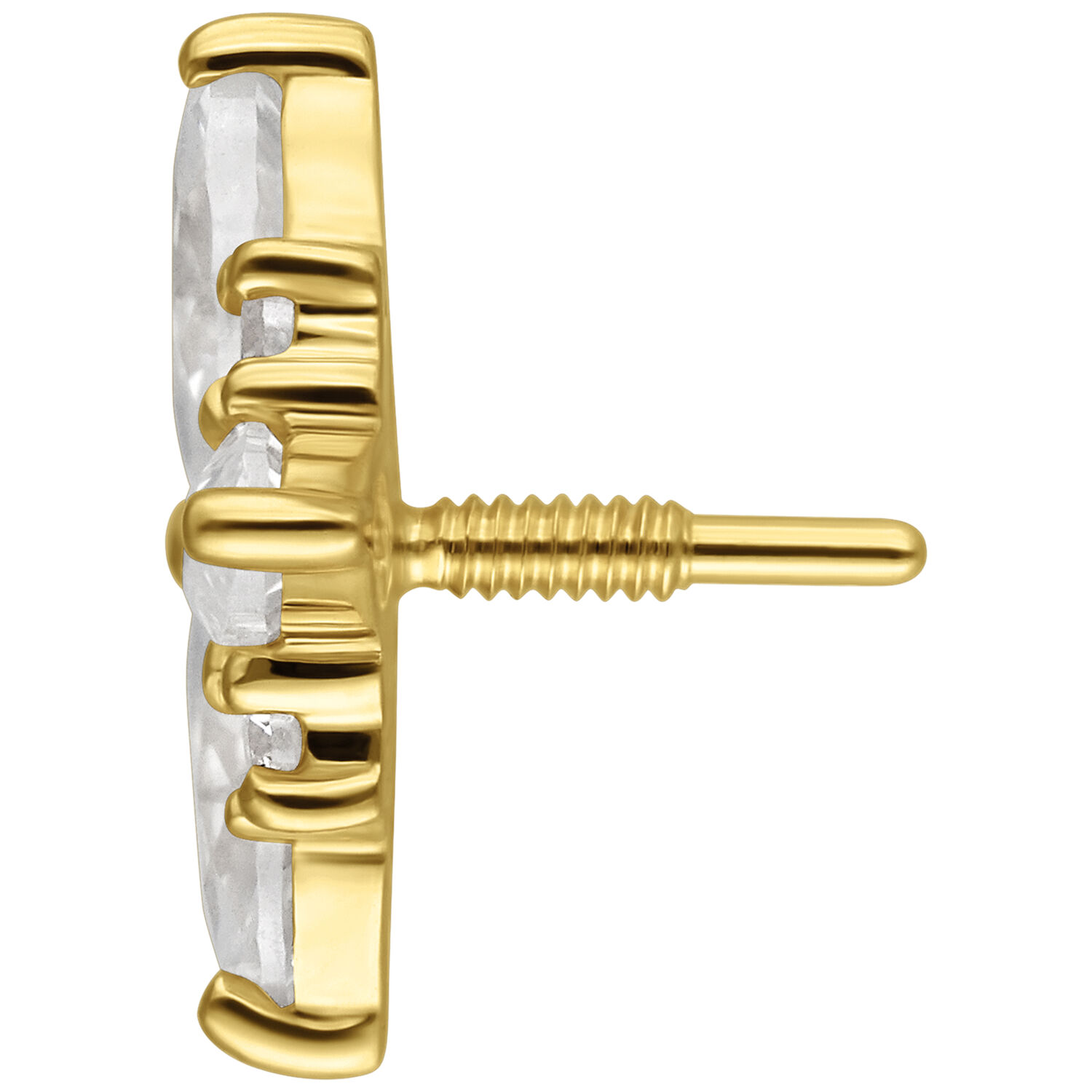 The harmonious arrangement of shapes and brilliance gives the piece a graceful, radiant presence. Designed for a perfect fit on the 14K Perfect Fit Labret, it ensures secure placement, lasting comfort, and an elegant finish.
