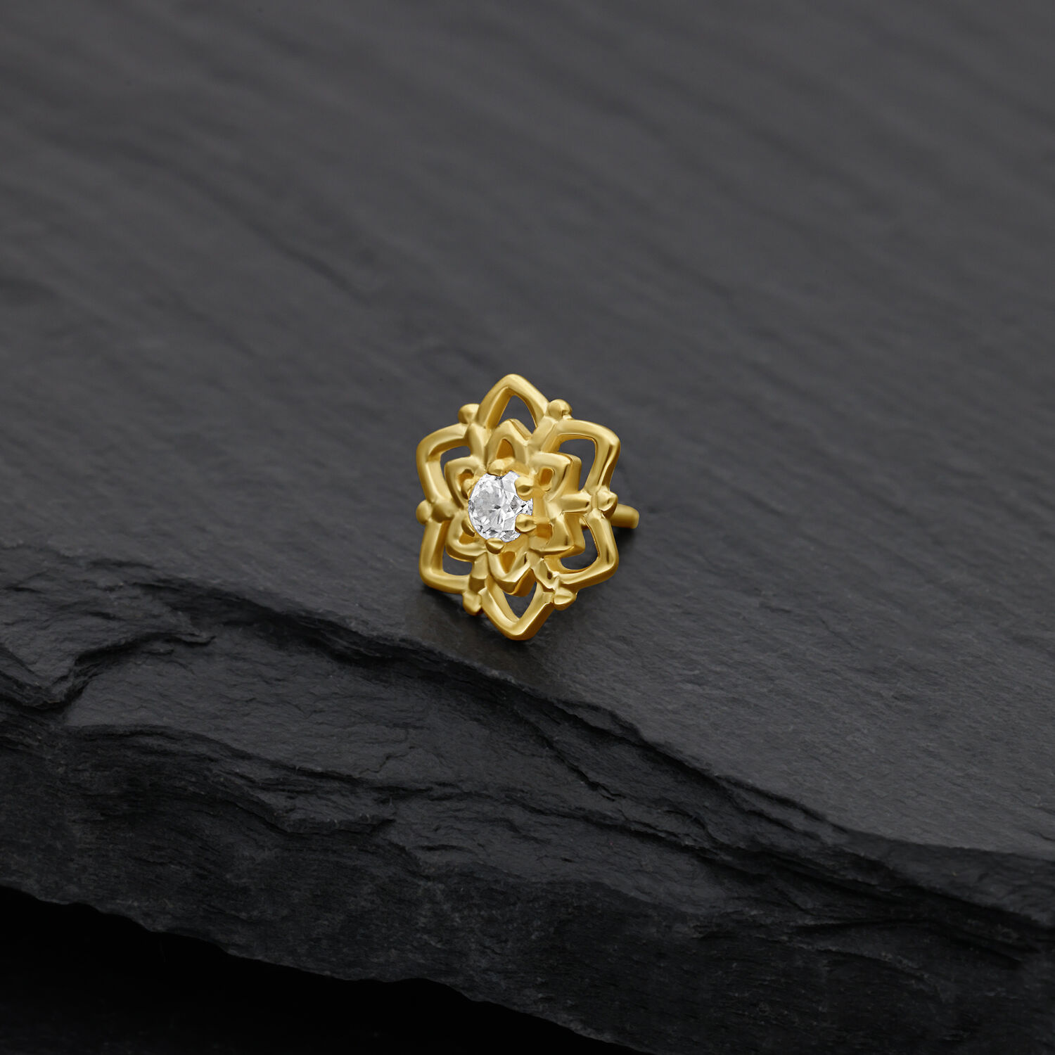 14K Perfect Fit Moissanite Flower -koristeosa yhdistää herkän kauneuden ja ylellisen loiston. Korkealaatuisesta, kiillotetusta 14 karaatin (585) keltakullasta valmistetussa koristeosassa on kukkakuvio, jonka keskellä oleva moissaniittikivi heijastaa valoa poikkeuksellisen voimakkaasti.