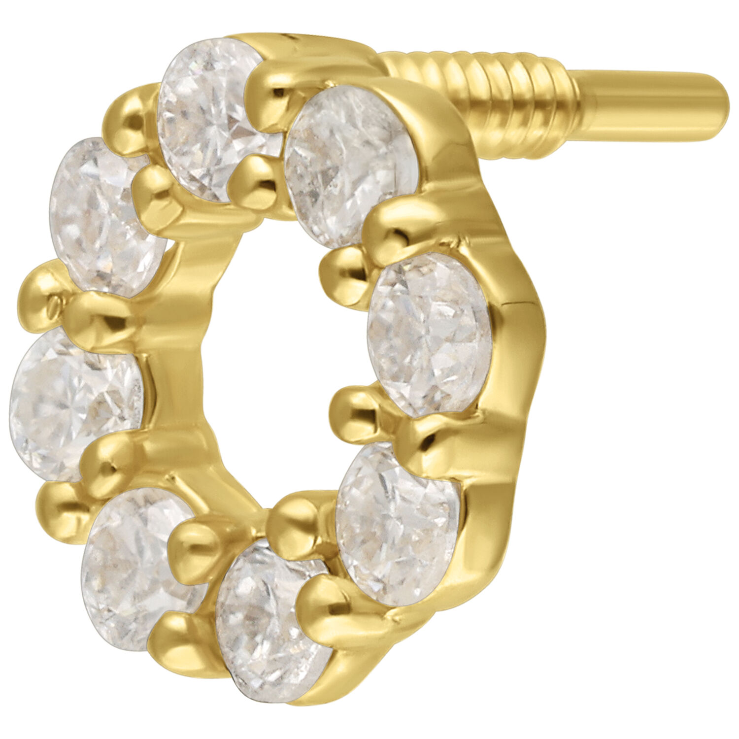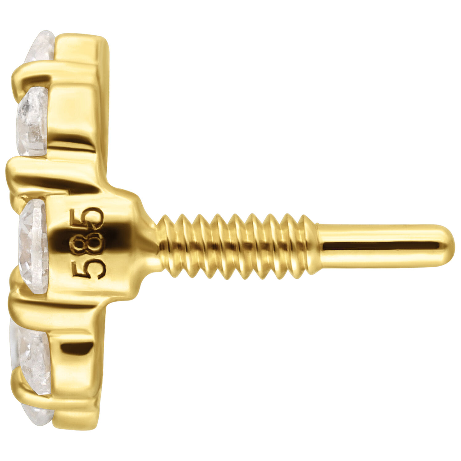 Crafted from solid 14 karat gold, this attachment features a secure perfect-fit mechanism for effortless insertion and lasting stability. Its balanced design and radiant sparkle make it a standout addition to any fine body jewelry collection.