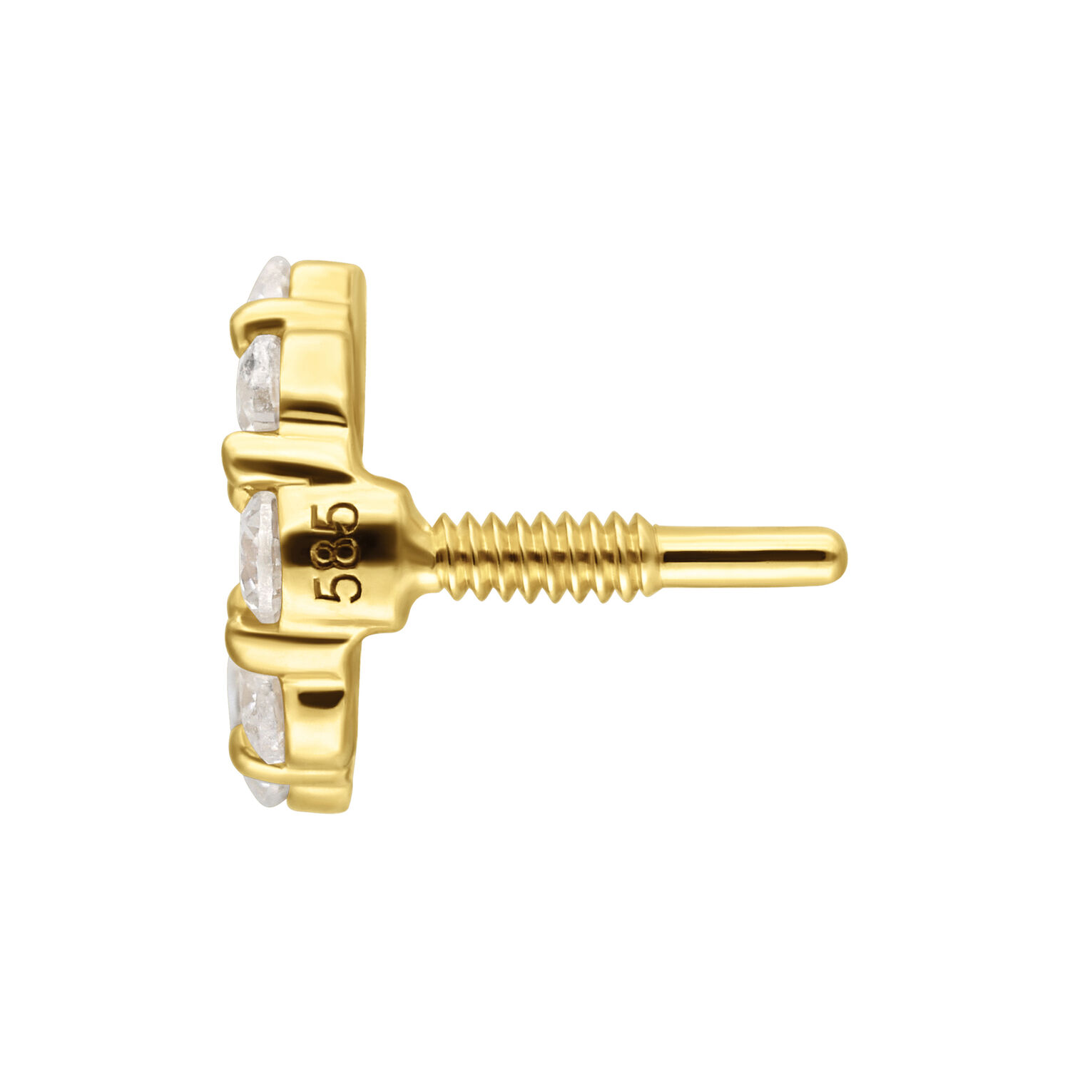 14 karaatin kullasta valmistetussa korussa on turvallinen Perfect Fit -kiinnitysmekanismi, joka takaa vaivattoman kiinnityksen. Sen tasapainoinen muotoilu ja säihkyvä loisto tekevät siitä erottuvan lisän mihin tahansa korkealaatuiseen lävistyskorukokoelmaan.