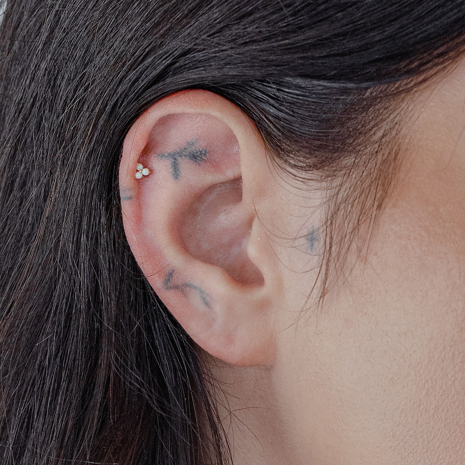 Tämän Wildcat-korumalliston kultaisen koristeosan (14 karaatin (585) keltakulta) keskipisteenä on kaunis, synteettisestä opaalista valmistettu, kolmiosainen koriste. Koristeosa sopii täydellisesti yhteen Wildcat® – 14K Perfect Fit Labretin kanssa ja sen yksinkertainen muotoilu on täydellisessä tasapainossa. Koristeosan halkaisija on 3,5 mm ja paino vain 0,07 g – yksinkertainen ja kevyt kultainen koristeosa.