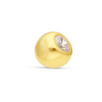 18-karat yellow gold ball with a clear crystal stone, ideal as a replacement component or for refreshing the look of a piercing.