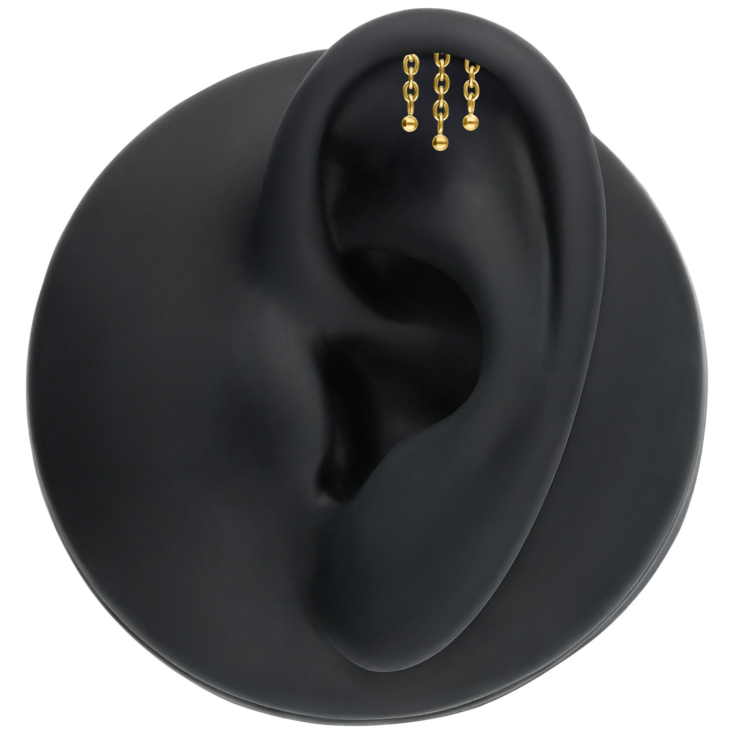 In this attachment, cool premium titanium meets innovative design. This piece is perfectly suited for your hidden helix. The curved bar hides neatly within the fold of your ear, leaving only the delicate chain visible – adding an elegant and truly unique flair to your look.