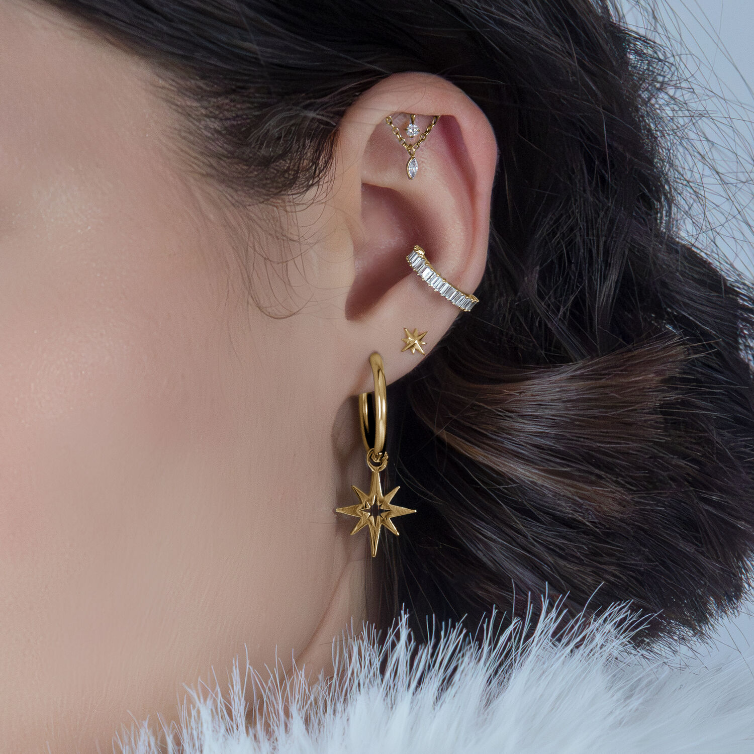 Piilotettu muotoilu luo illuusion kelluvista ketjuista, lisäten korvalle ainutlaatuisen ja elegantin vivahteen. Push-fit-mekanismi mahdollistaa helpon asennuksen, tarjoten mukavuutta ja vaivattomuutta käytössä.