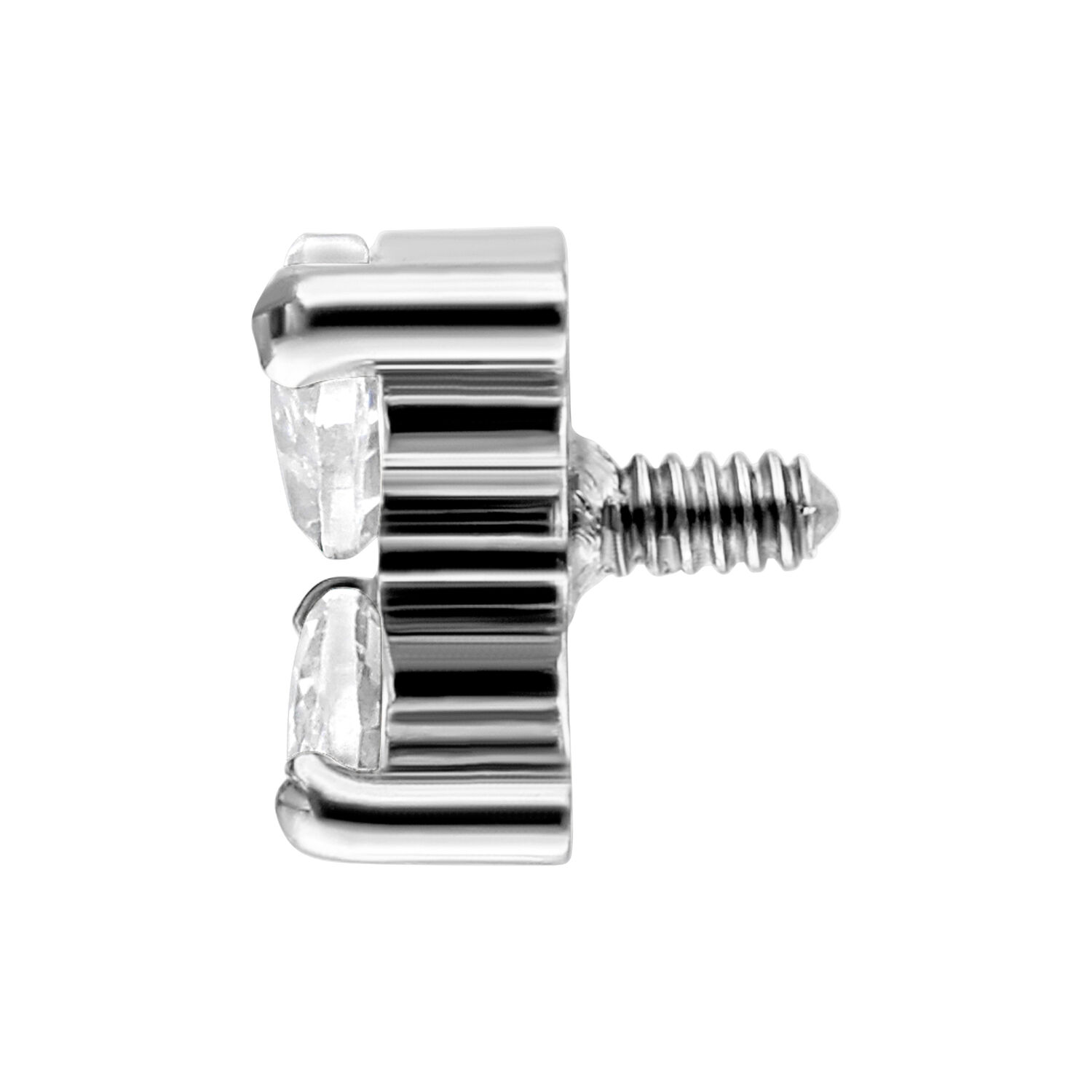 Tässä lävistyskorujen koristeosassa tyylikäs, korkealaatuinen titaani kohtaa klassisen muotoilun. Titaaniset koristeosat sopivat ihanteellisesti sisäkierteisiin lävistyskoruihin, joiden sisäkierteen koko on 0,8 mm. Koristeosat voidaan yhdistää helposti myös Perfect Fit Labret – varren/kantaosan kanssa.