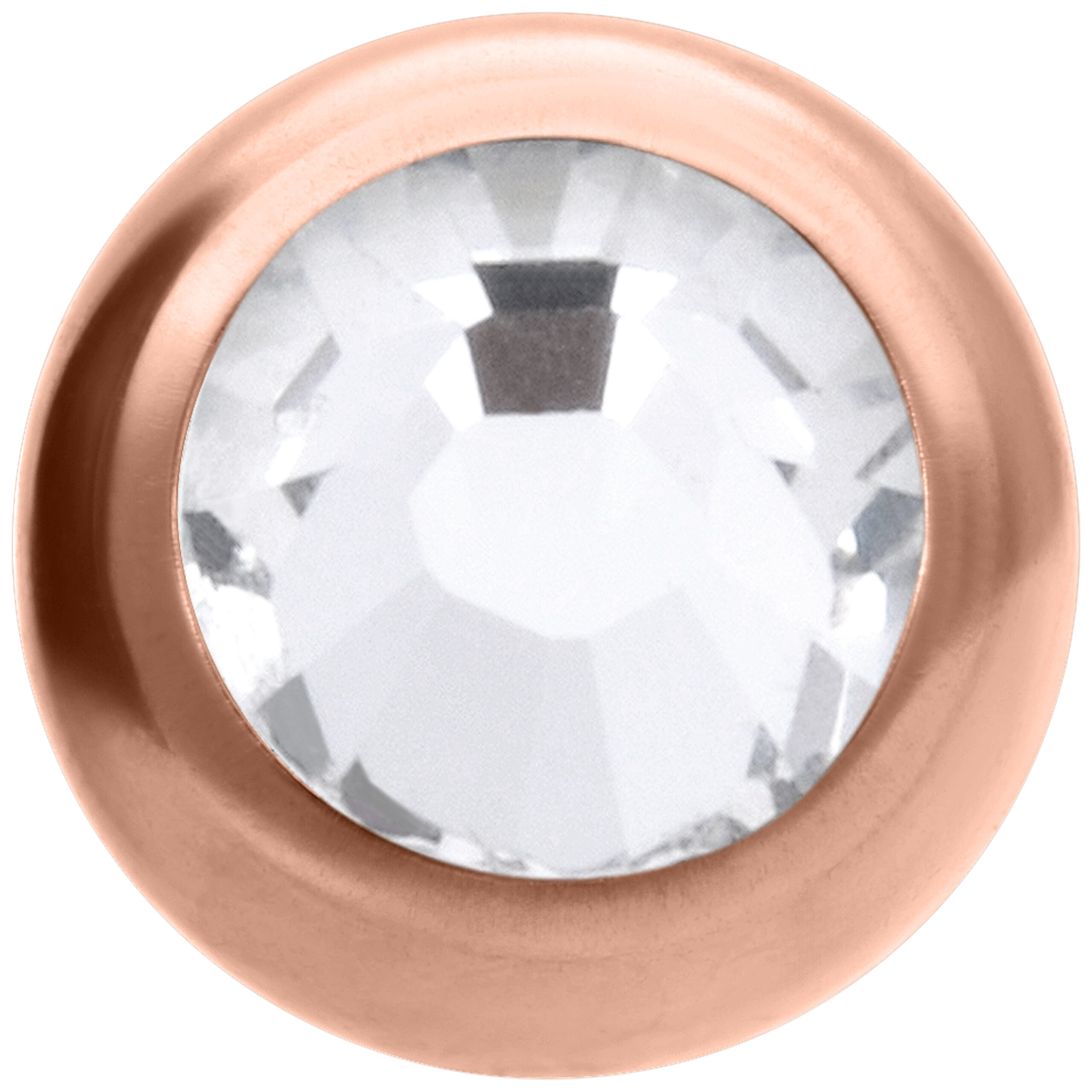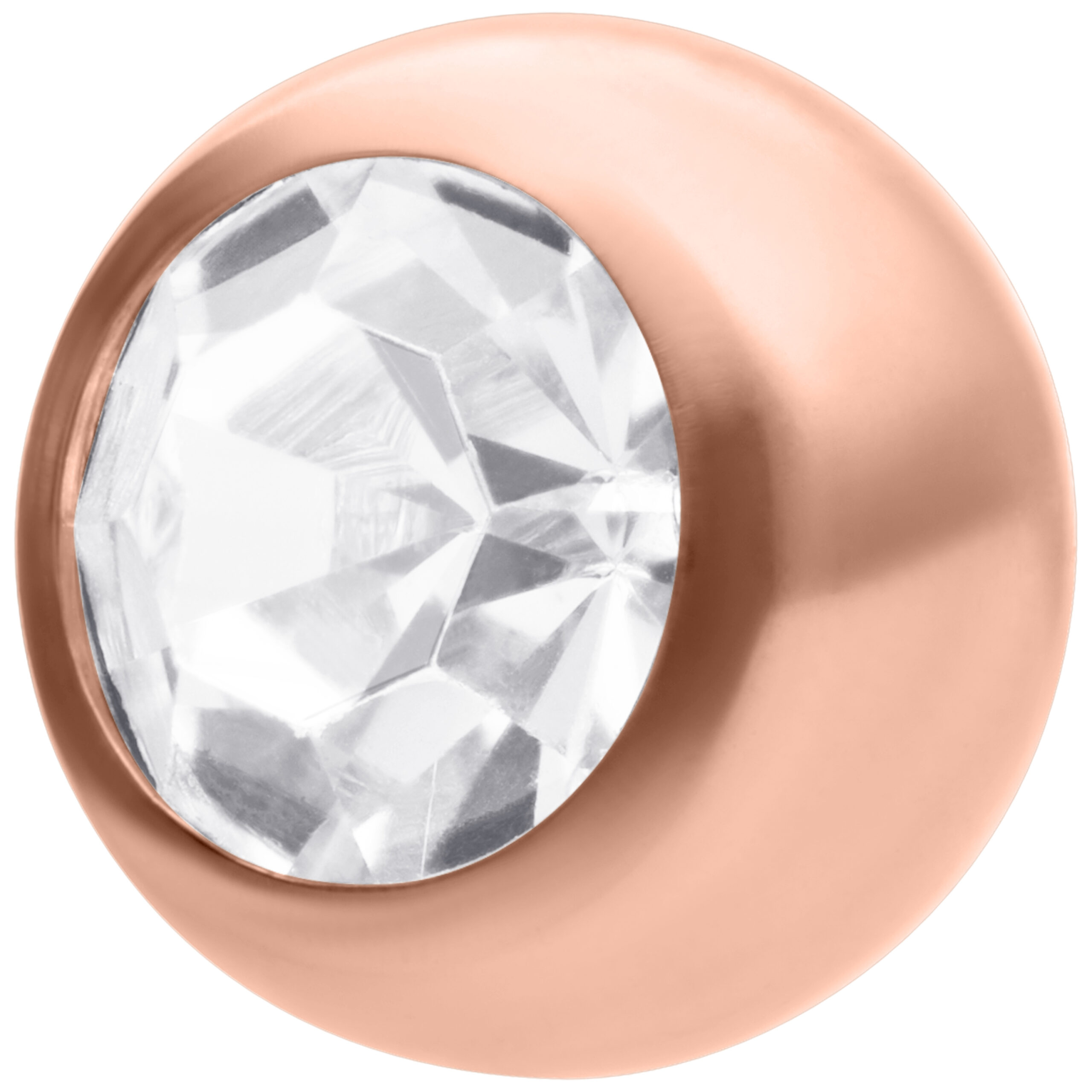 Titaanista valmistettu, ruusukullan värinen, sisäkierteinen koristepallo. Korussa on iso, kristallinkirkas kivi.