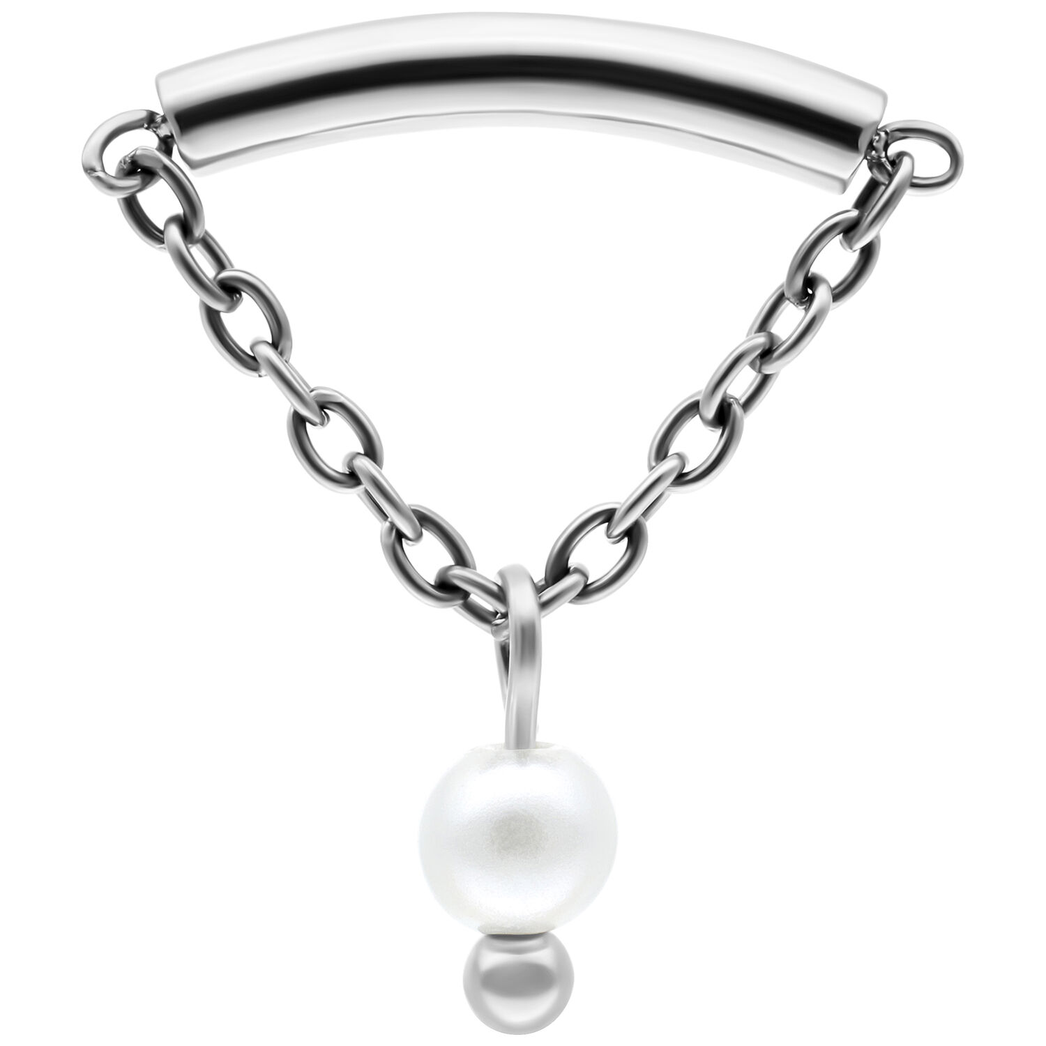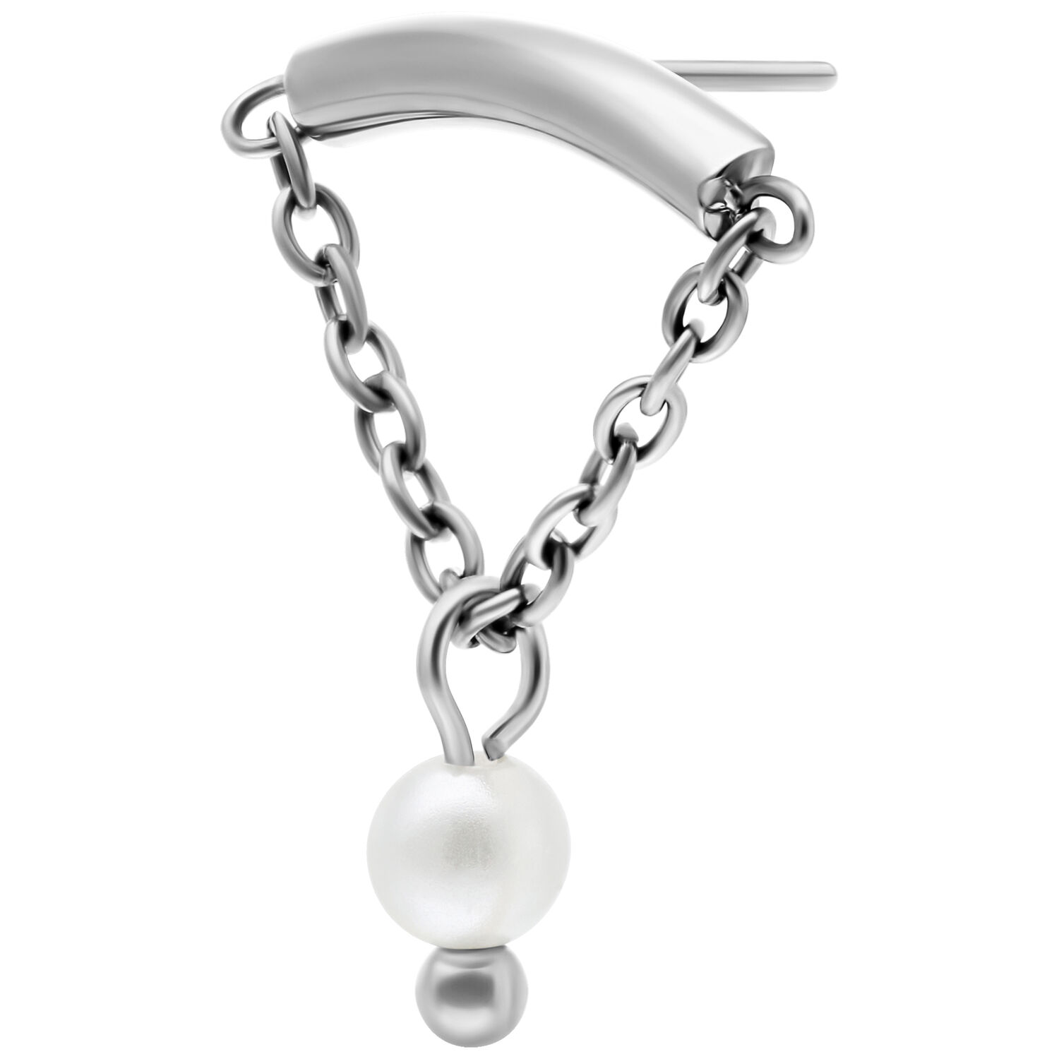 In this attachment, cool, high-quality titanium meets innovative design. This attachment is perfectly suited for your hidden helix. The curved bar hides seamlessly in your ear fold, leaving only the delicate chain visible, giving your look an elegant and truly unique flair.