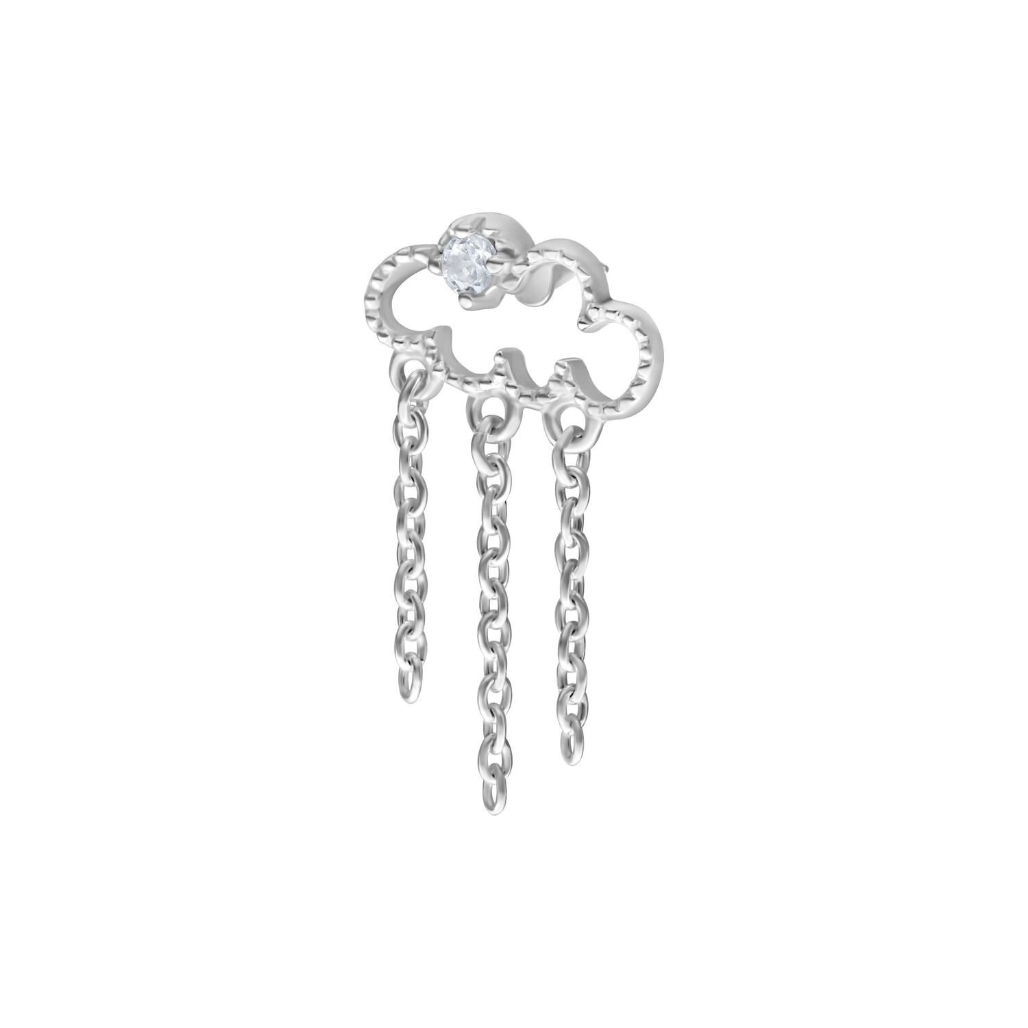 Löydä lumoava Push Fit Cloudy -koristeosa, joka lisää taivaallista ilmettä lookiisi. Tämä kaunis pilven muotoinen koru on koristeltu kimaltelevilla kiteillä ja antaa vaikuttavan ilmeen kolmella pienellä ketjulla, jotka laskeutuvat kuin lempeä sade.