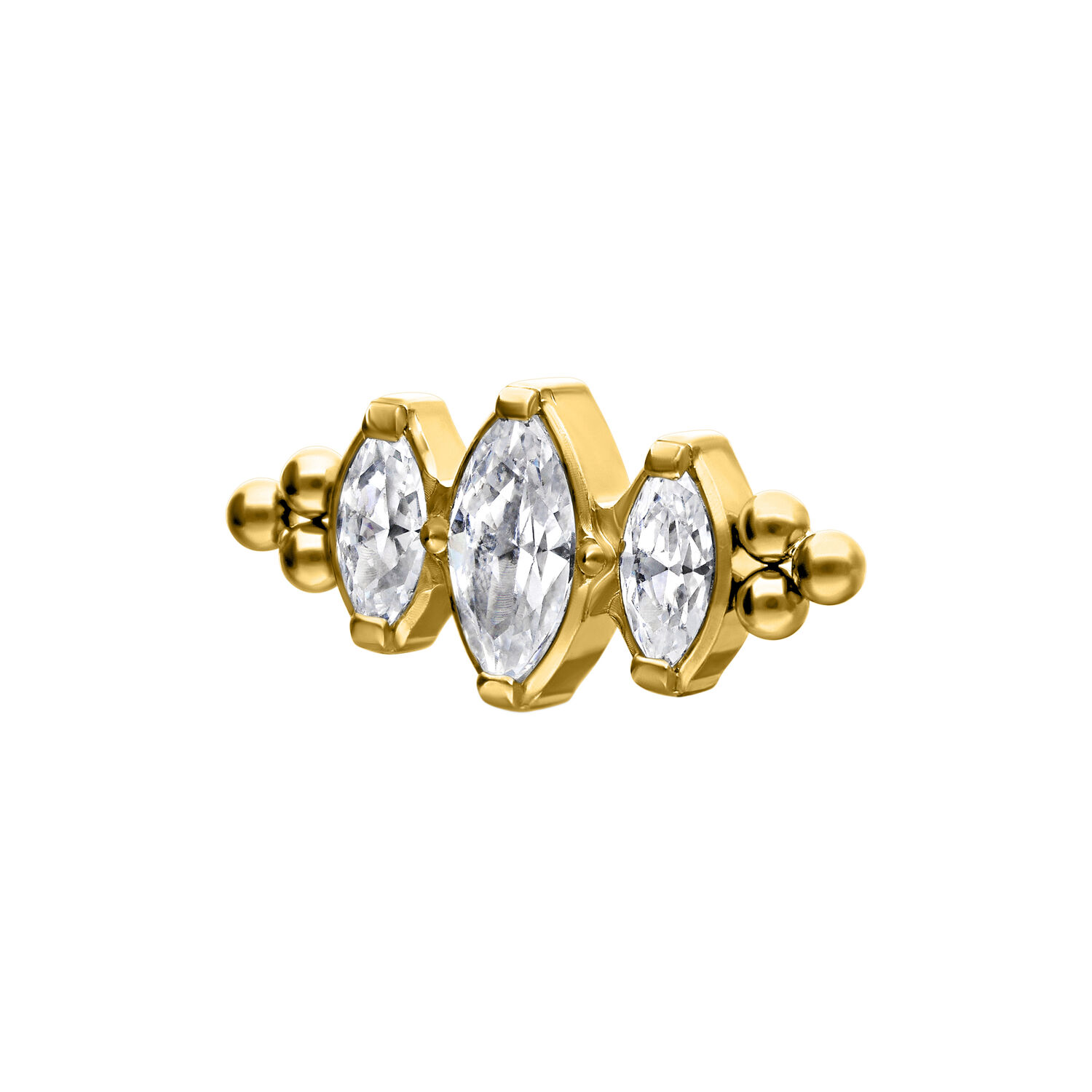 Juhlava, lähes kuninkaallinen muoto ja kauniiden koristekristallien yhdistelmä tekee tästä Push Fit -koristeosasta todellisen katseenvangitsija. Kristallien välke antaa lävistyskorulle erityisen kauniin ulkonäön.