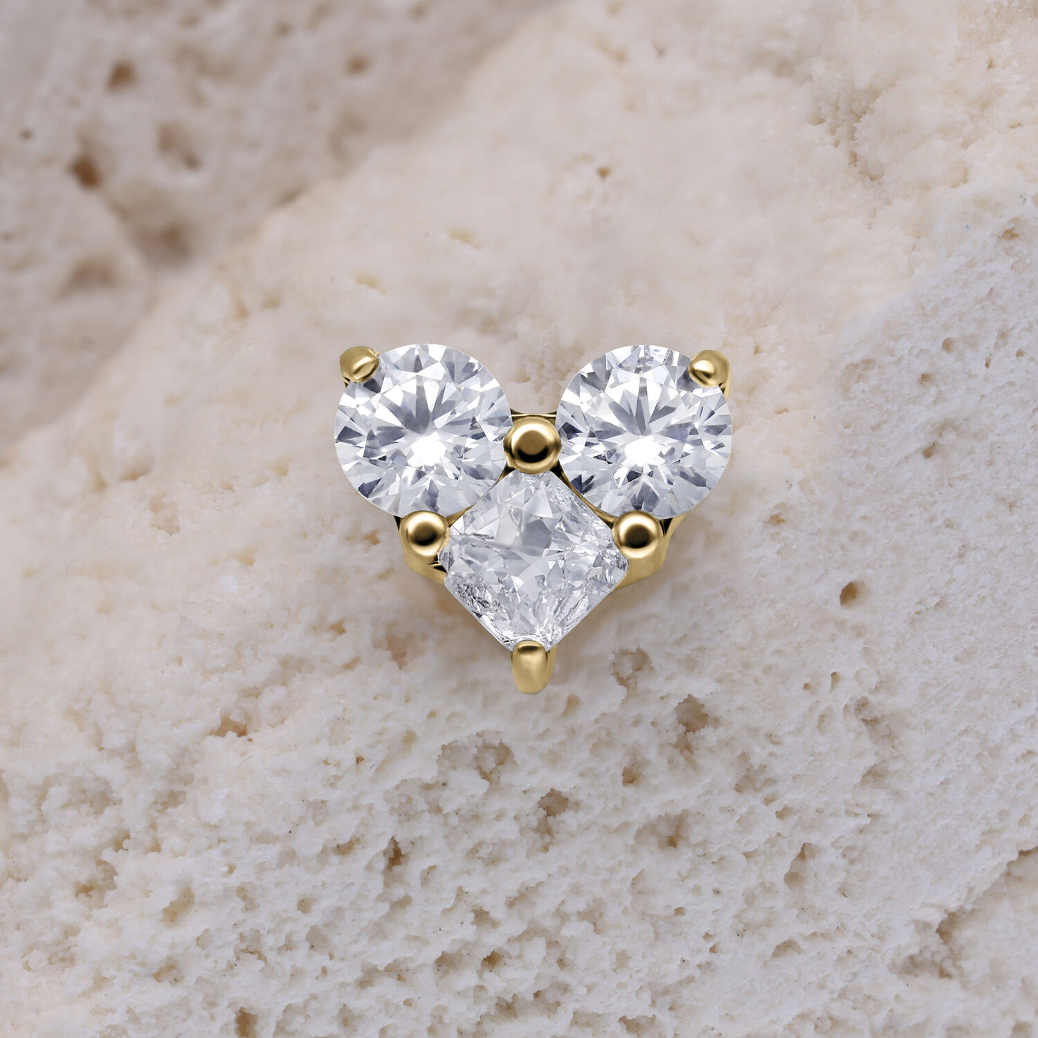 Titaaninen lävistyskorun koristeosa lisää tyyliisi ripauksen eleganssia, sillä kaunis, pienen sydämen muotoinen koru koostuu kolmesta kimaltelevasta kristallista, jotka tuovat lumoavan kiillon.