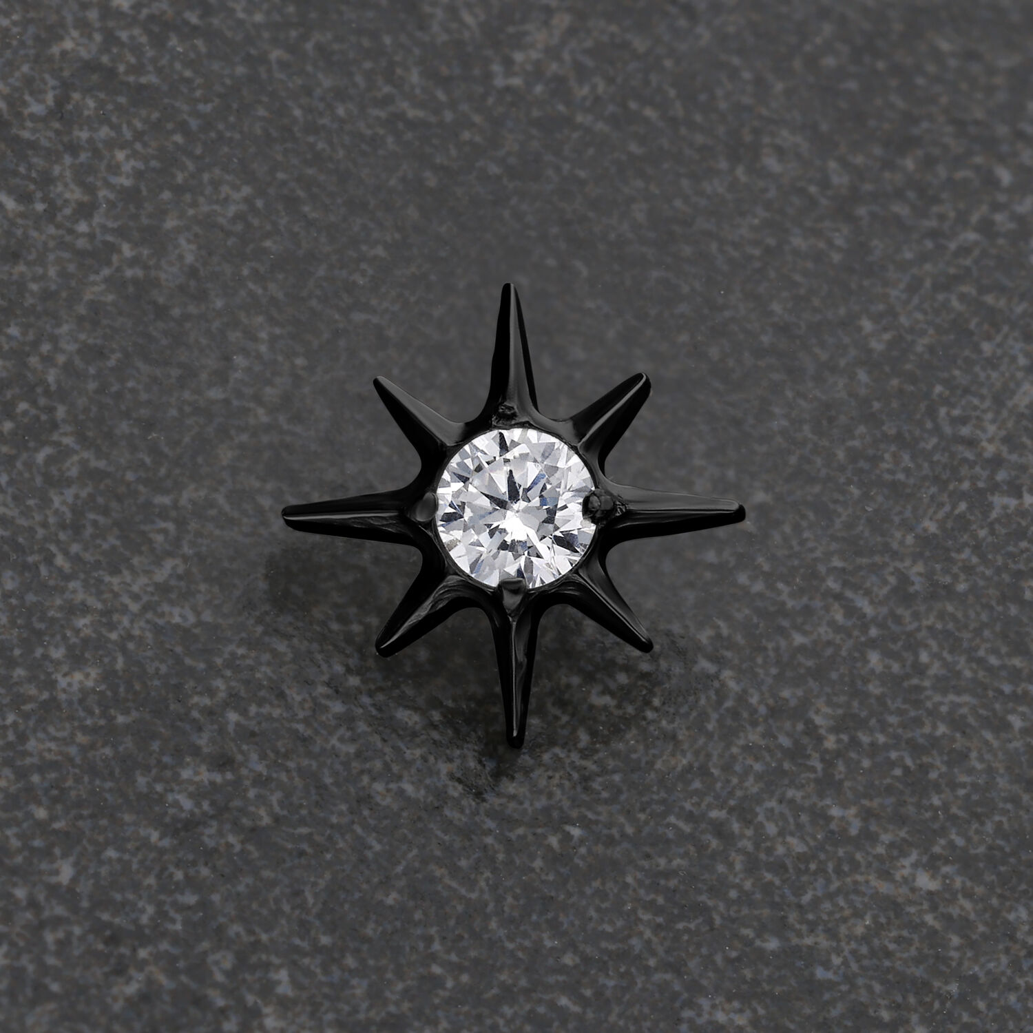 Titaaninen lävistyskorun koristeosa, jossa tähden muotoisen korun keskellä komeilee kimalteva kristalli. Kristalli vangitsee valon kauniisti ja luo kiiltävän efektin, joka tekee lävistyksestäsi todellisen katseenvangitsijan.