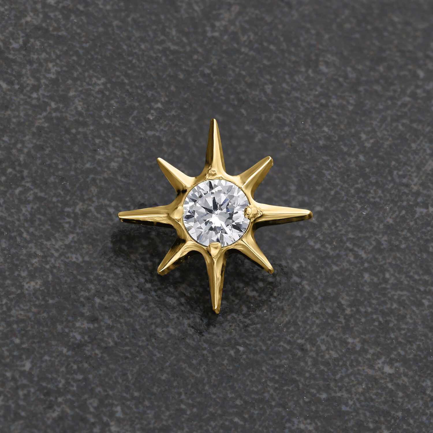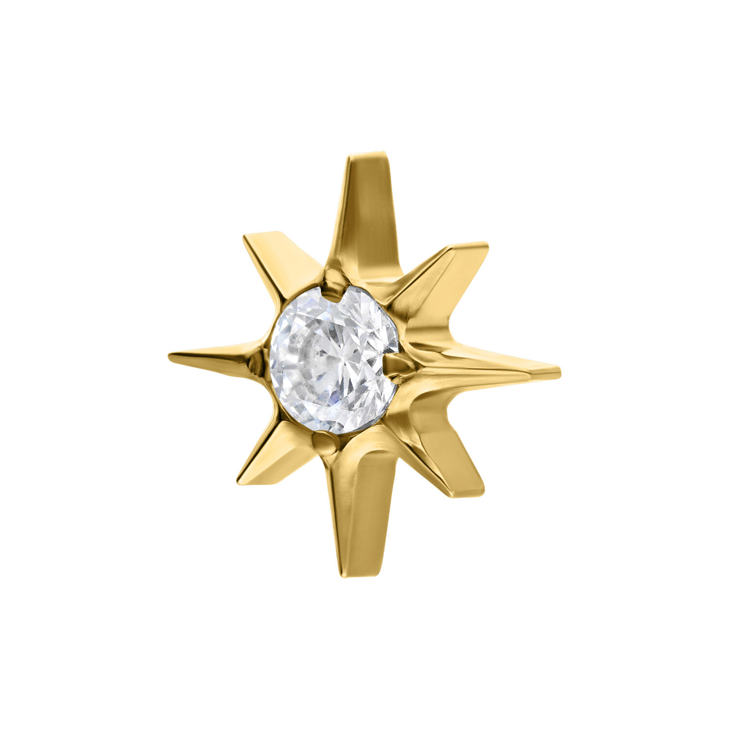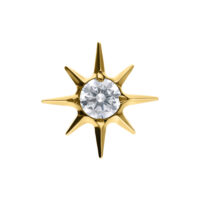 Titaaninen lävistyskorun koristeosa, jossa tähden muotoisen korun keskellä komeilee kimalteva kristalli. Kristalli vangitsee valon kauniisti ja luo kiiltävän efektin, joka tekee lävistyksestäsi todellisen katseenvangitsijan.