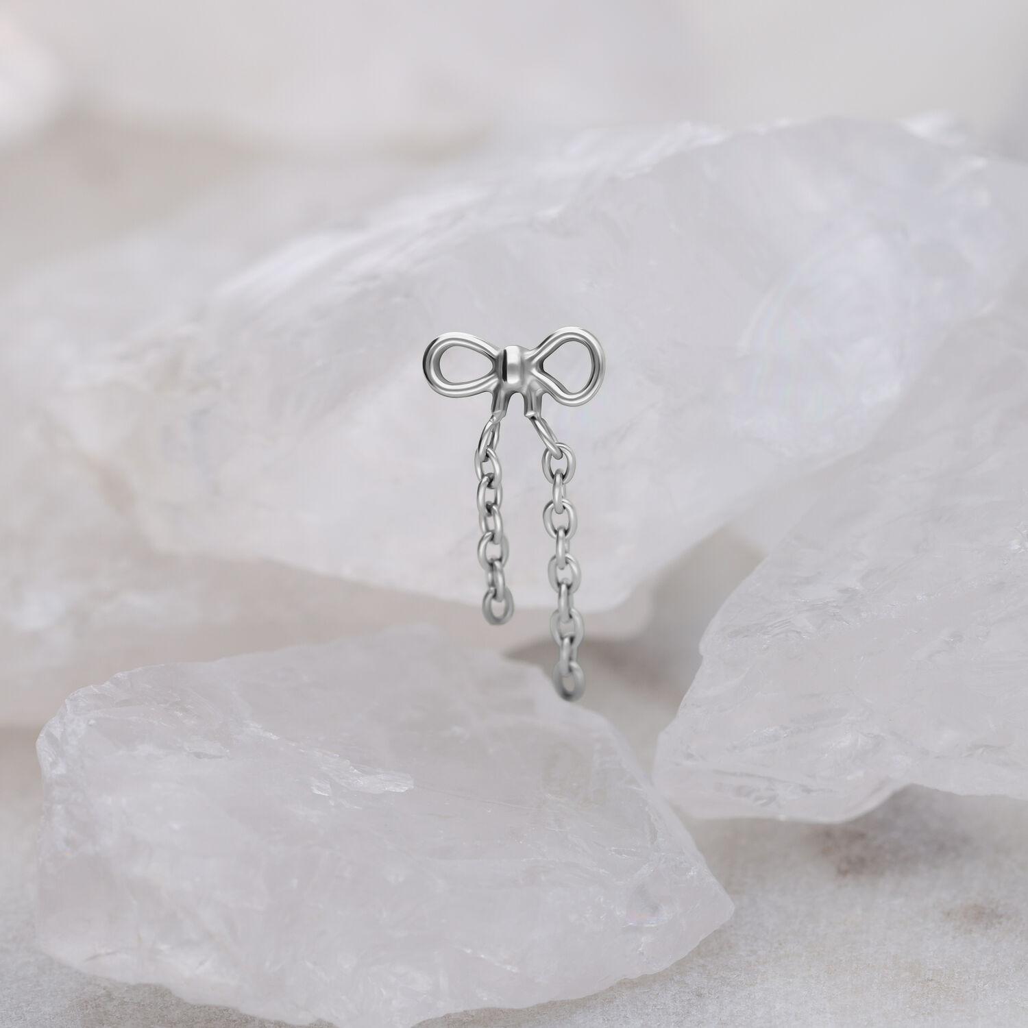The Dangling Bow attachment adds a cute and feminine touch to your piercing. Its delicately crafted bow and dangling charm create subtle movement and sparkle. Made from premium Grade 23 titanium (G23), it offers excellent biocompatibility and is suitable for everyday wear.