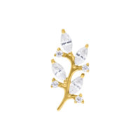 Push Fit Lovely Crystal Leaf -koristeosa yhdistää luonnollisen keveyden ja intensiivisen kimalluksen. Pehmeästi kaartuva oksan muoto on koristeltu marquise-leikatulla ja pyöreällä kristallilla, jotka vangitsevat valon jokaisesta kulmasta, luoden säteilevän ja ylellisen vaikutelman.