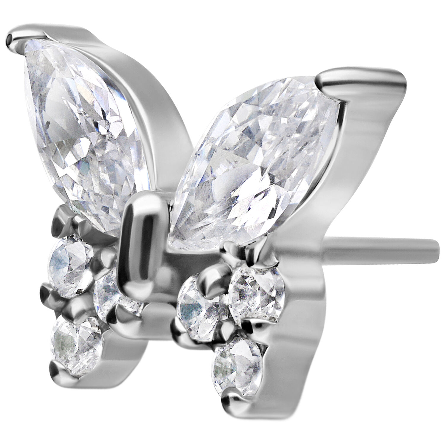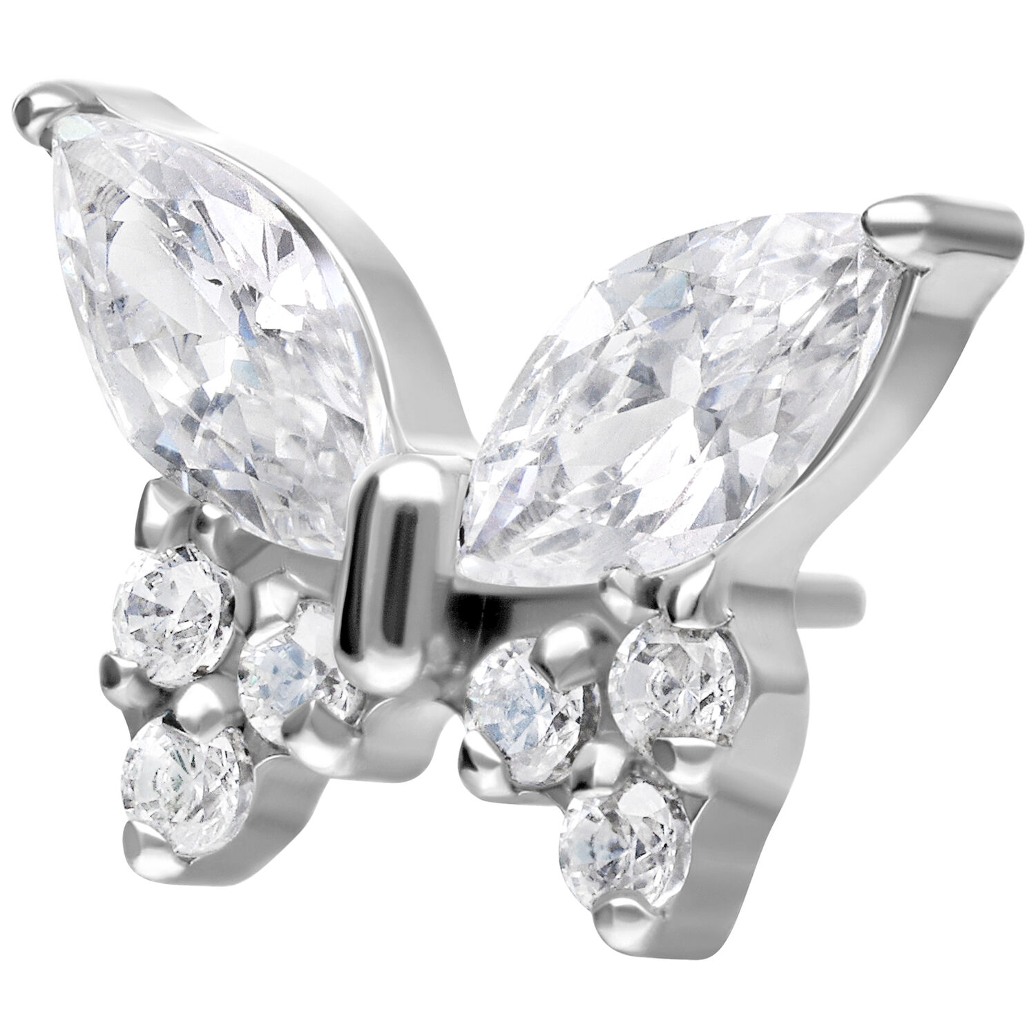 Push Fit Multi Jewelled Butterfly -koristeosassa hillitty, korkealaatuinen titaani kohtaa luonnonläheisen muotoilun.