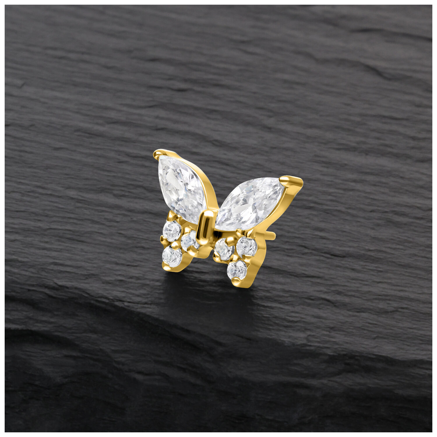 Push Fit Multi Jewelled Butterfly -koristeosassa hillitty, korkealaatuinen titaani kohtaa luonnonläheisen muotoilun.