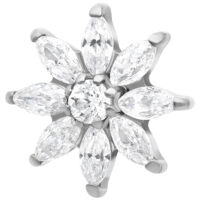 Push-fit -mekanismin ansiosta Ice Flower -koristeosa on helppo kiinnittää ja pysyy tukevasti paikoillaan. Täydellinen helix-, lobe- ja conch-lävistyksiin – hienostunut talvinen yksityiskohta, joka säihkyy ympäri vuoden.