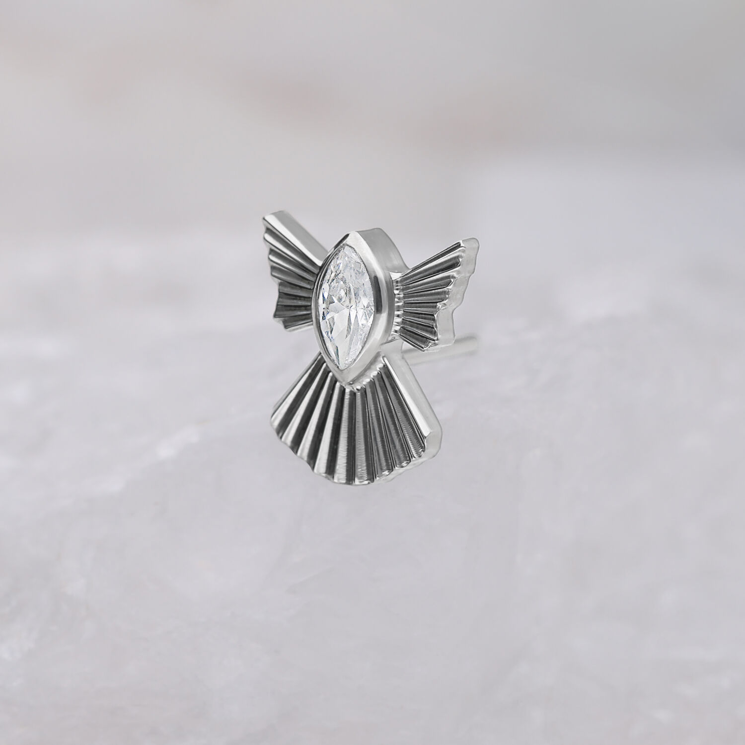 Winter Snow Angel -koristeosa tuo lävistykseesi pehmeää, enkelimäistä kimallusta. Sen herkkä, talvesta inspiroitunut enkelidesign heijastaa valoa kauniisti, luoden huurteisen ja eteerisen hohteen. Korkealaatuisesta Grade 23 (G23) -titaanista valmistettu koru tarjoaa erinomaisen ihoystävällisyyden ja sopii täydellisesti jokapäiväiseen käyttöön.