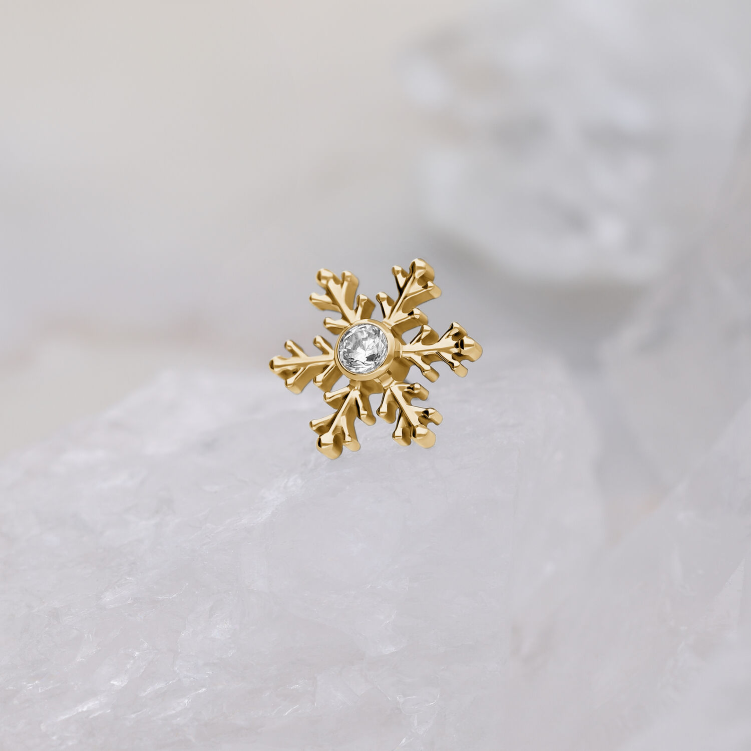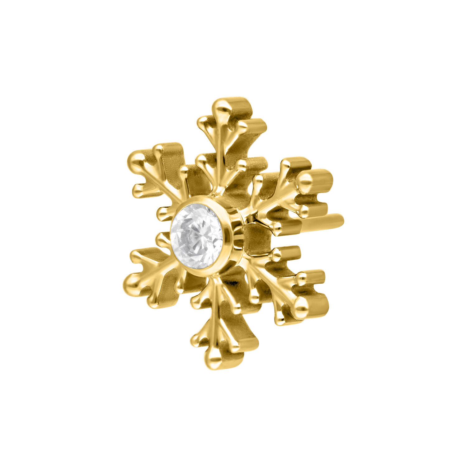 Push Fit Winter Snowflake -koristeosa tuo ripauksen talvista taikaa lävistykseesi. Yksityiskohtainen Grade 23 -titaanista valmistettu lumihiutalekoru sisältää siistit, hienostuneet haarat sekä keskellä kimaltavan kristallin, joka heijastaa valoa kauniisti.