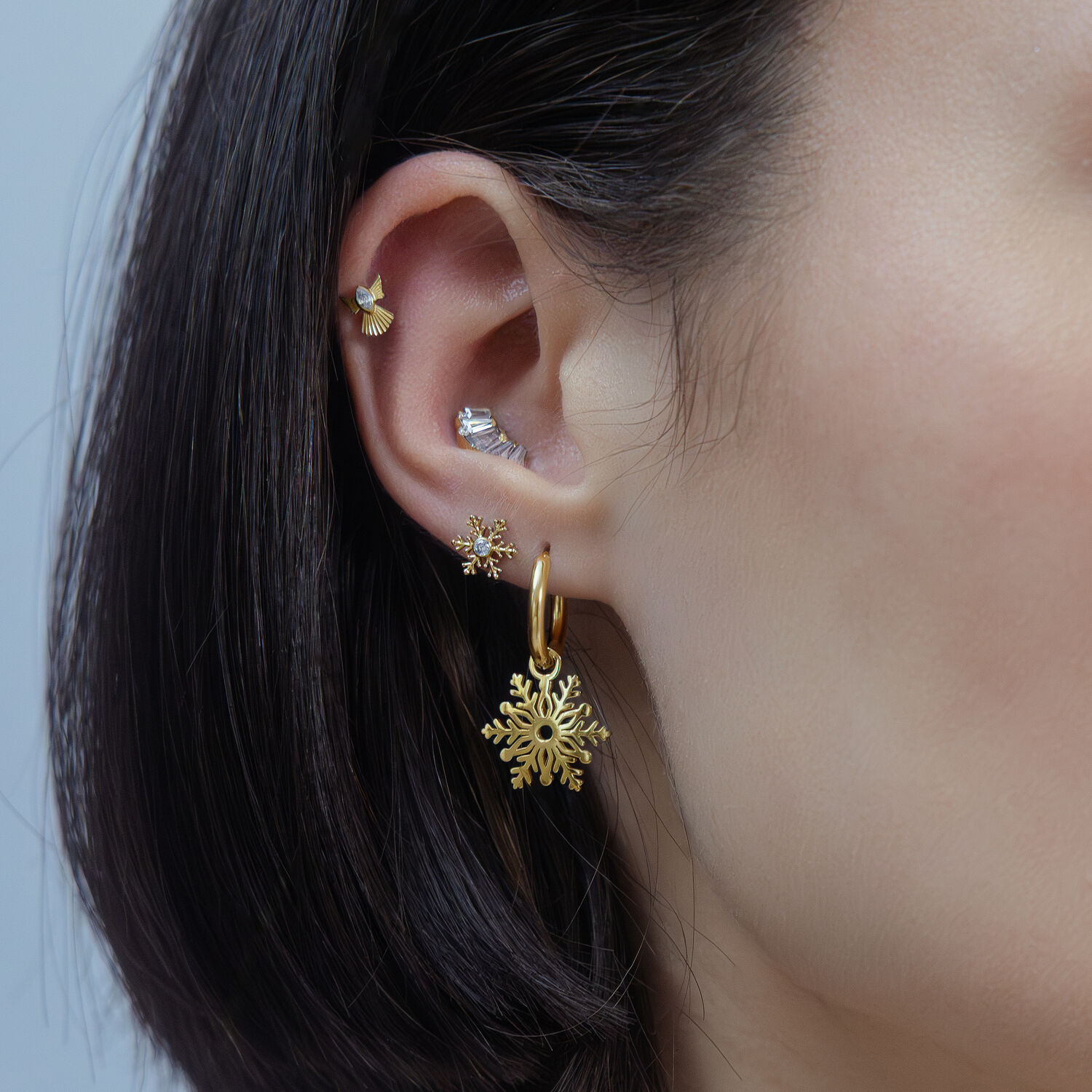 Olipa se käytössäsi hienovaraisena kausikoristeena tai näyttävänä talvisena statement-koruna, tämä lumihiutalokoriste lisää eleganttia, huurteista viehätystä mihin tahansa korukokonaisuuteen.
