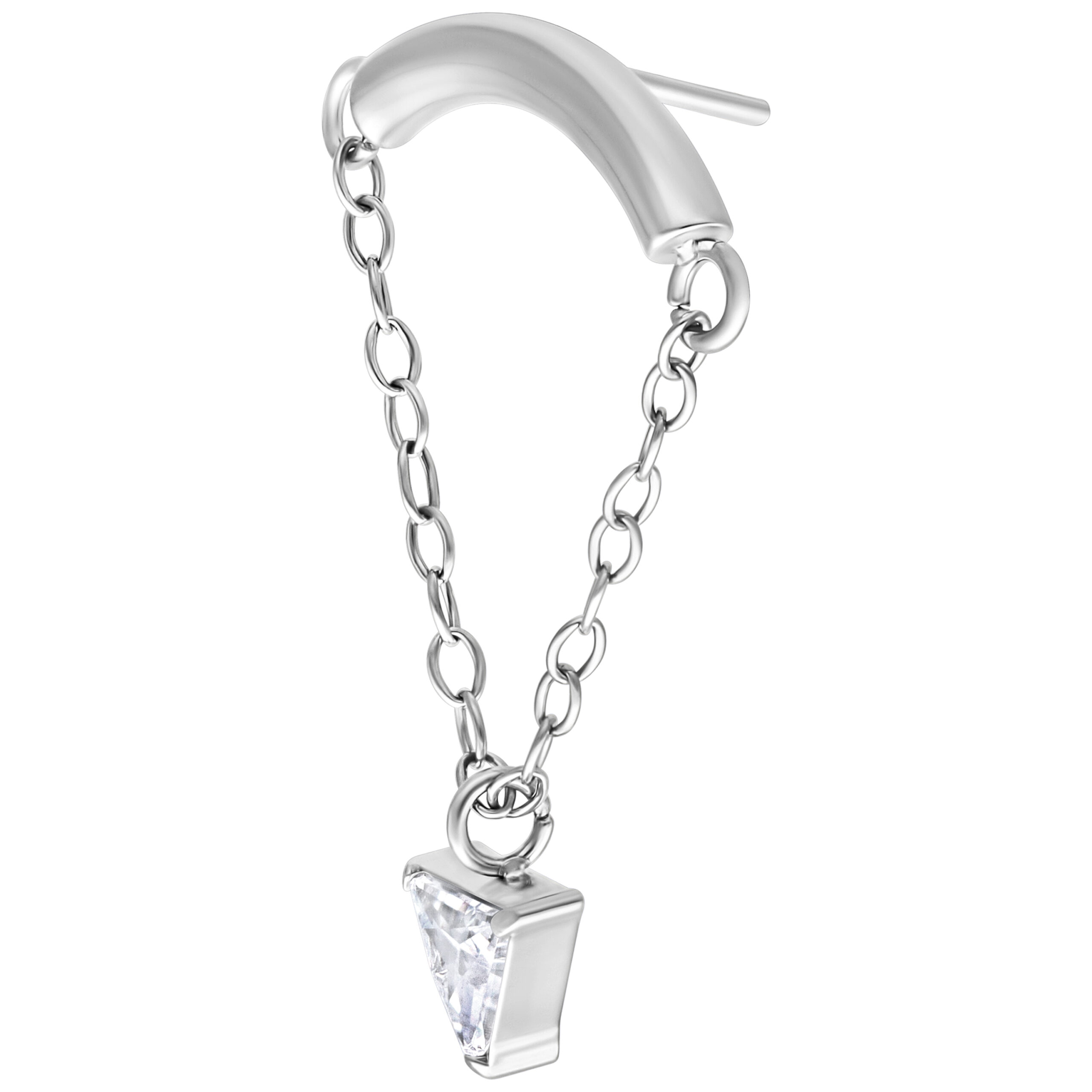 With this attachment, cool, high-quality titanium meets innovative design. This attachment is perfect for your very special helix. The curved bar hides perfectly in the crease of your ear so that only the fine chain is visible, giving your look an elegant and very special flair.