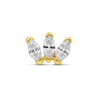 Are you looking for exclusive and luxurious piercing jewelry to give as a gift or to cherish? Then you’ve come to the right place, because our Wildcat collection offers everything you could wish for in high-quality precious metals. Our Internally Triple Fan Attachment is made of elegant 14-karat (585) yellow gold. The design is complemented by high-quality crystals that make the piece sparkle.