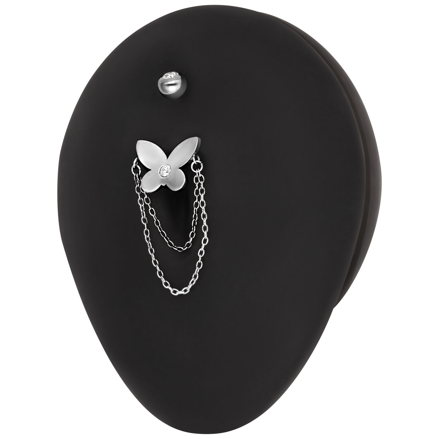 The Butterfly with Chains Bananabell combines modern design with refined details. The precisely crafted butterfly motif is complemented by delicate dangling chains, creating a dynamic and stylish appearance.