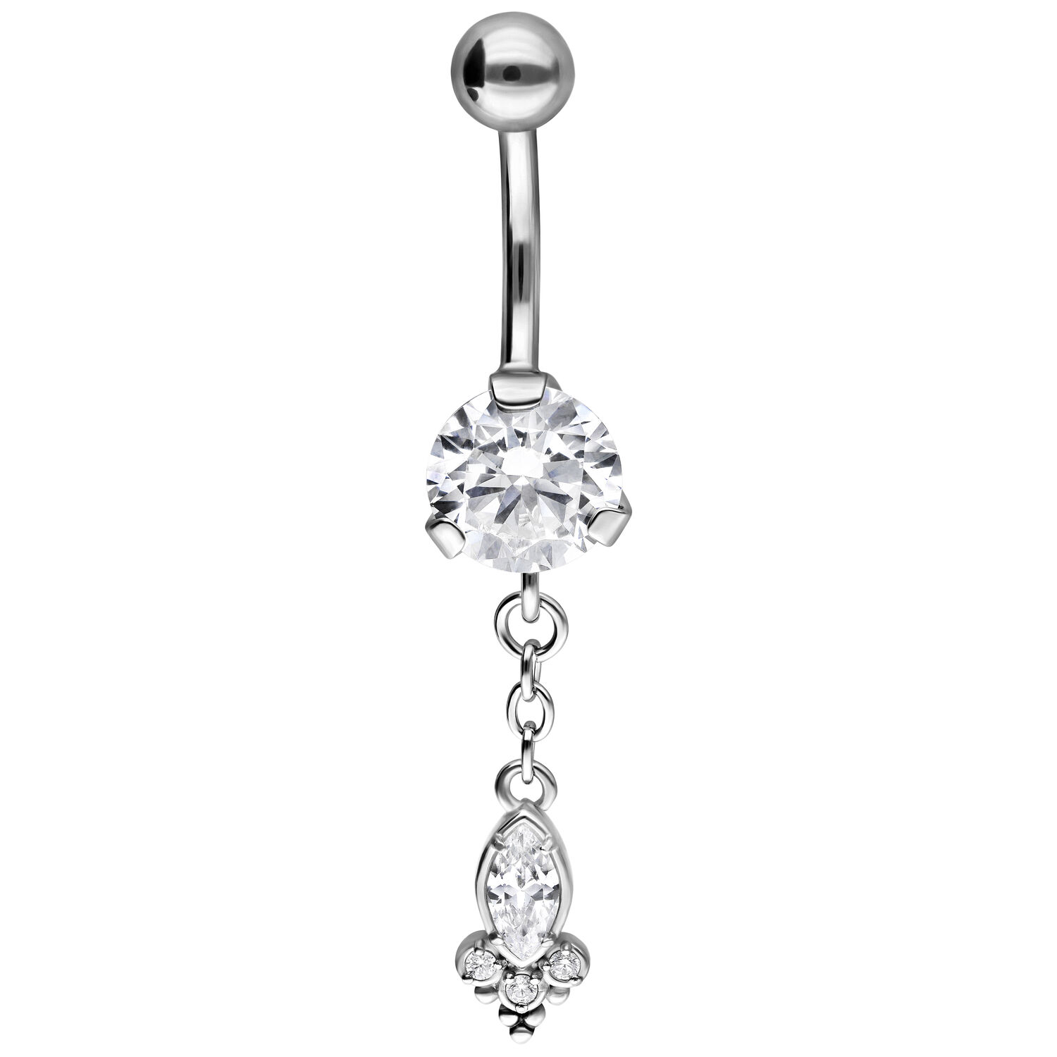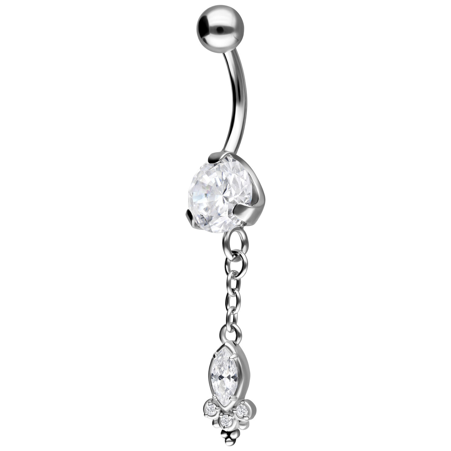 Tässä Steel Basicline® -mallistomme napalävistyksessä on yksi kiinteä ja yksi irti ruuvattava pallo. Molemmat pallot on koristeltu kirkkailla zirkoniakristalleilla. Hieman kaareva tanko on ulkokierteinen. Upea koru on valmistettu korkealaatuisesta 316L kirurgisesta teräksestä ja siinä on PVD-pinnoite, joka saa korun loistamaan. Korun paksuus on 1,6 mm.