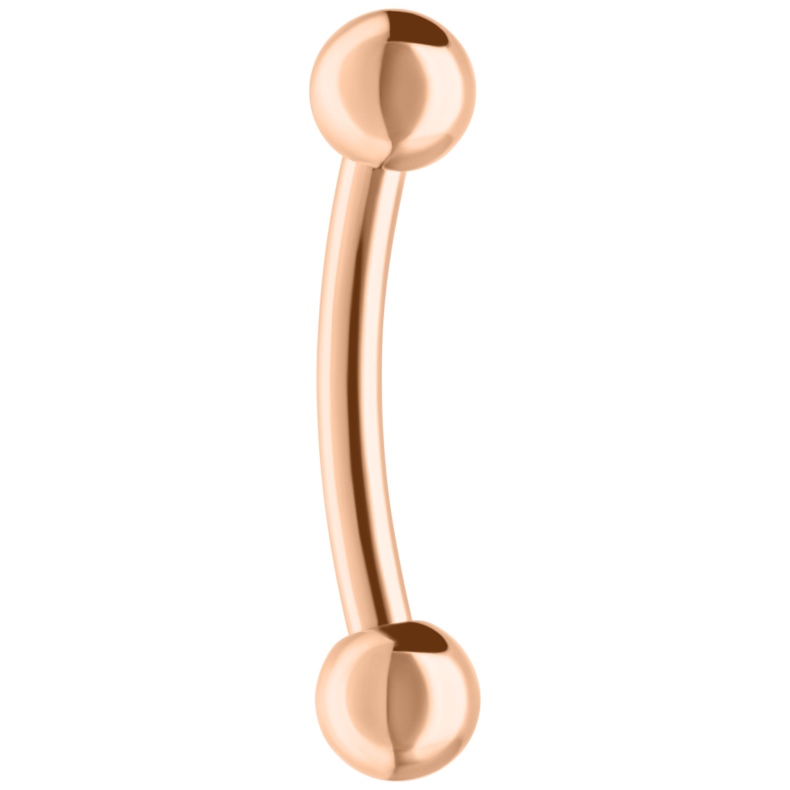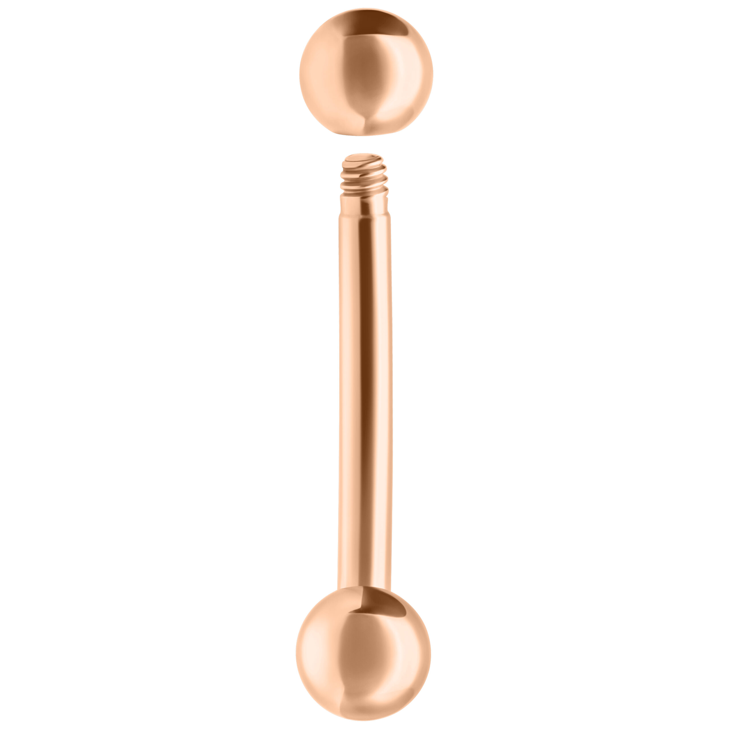 The Titan Rosegoldline – Fine Micro Bananabellin hieman kaareva varsi on ulkokierteinen. Pallot voidaan ruuvata ulkokierteisten bananabells-lävistyskorujemme ulkokierteisiin. Kaikki korumallistojemme kierteet ovat standardoituja, joten voit yhdistellä malliston koruja, koristeosia ja palloja keskenään.