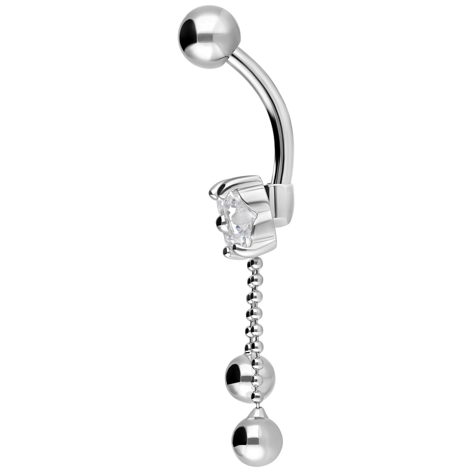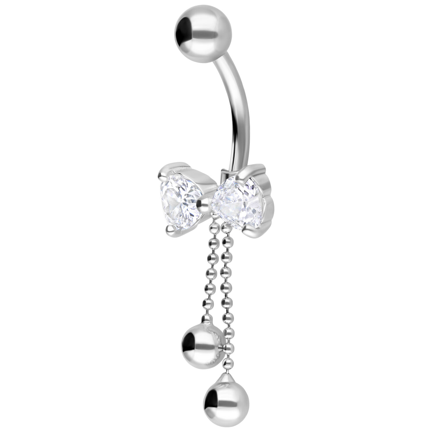 You love cute and playful designs? Then this belly button ring is just perfect for you! The banana barbell features an adorable bow accent, beautifully complemented by two small dangling beads.