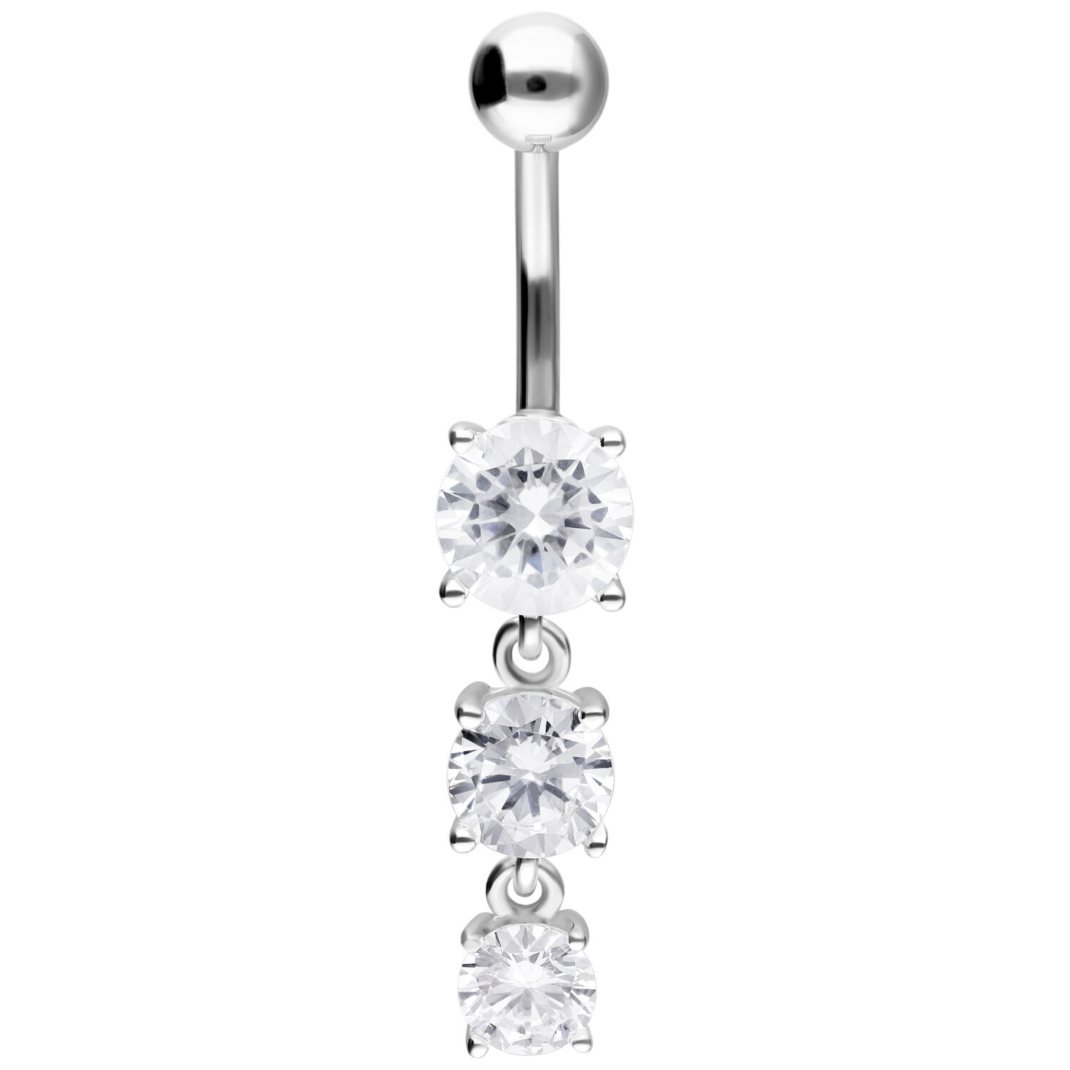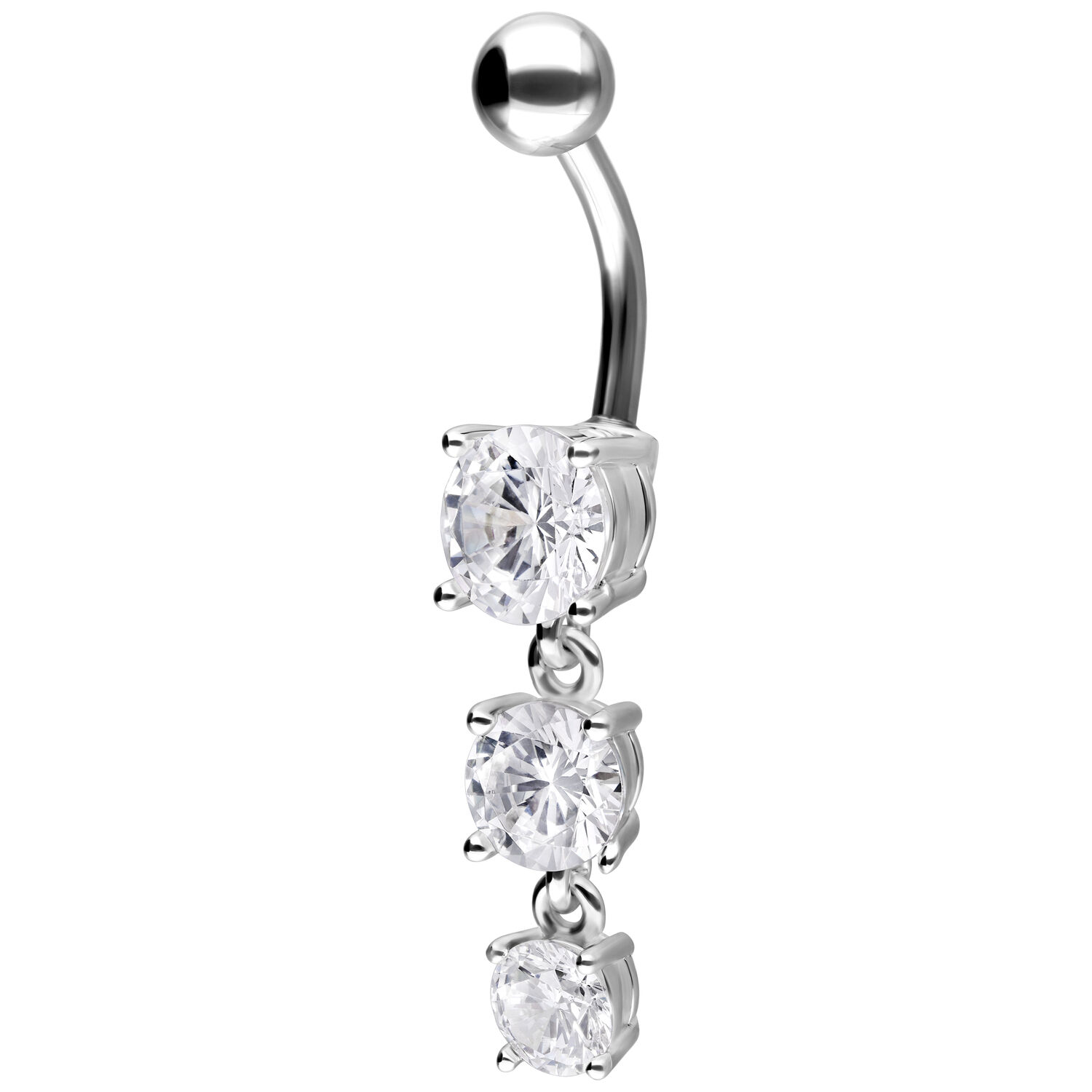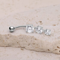 Rakastatko kaikkea kimaltavaa ja säihkyvää? Silloin tämä napakoru on juuri sinulle sopiva. Three Crystals Bananabell -lävistyskorussa on kolme kristallinkirkasta kiveä, joiden koot ovat 7,0, 6,0 ja 5,0 mm. Yläosan kaarevassa varressa on irrotettava 5,0 mm pallo. Molemmat osat on valmistettu korkealaatuisesta titaanista. Kristallien istutukset ovat 925 sterlinghopeaa.